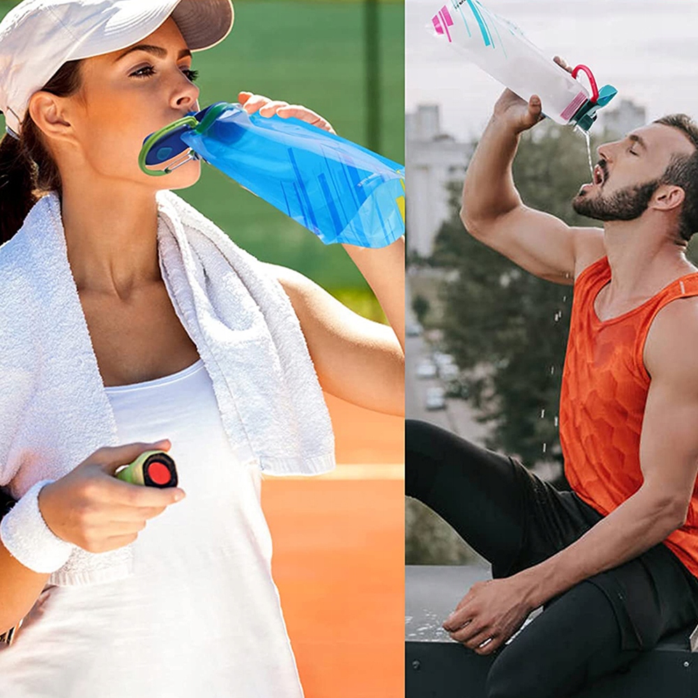 Эта бутылка для воды изготовлена из пищевого пластика, не содержит BPA, нетоксична, сверхлегка, портативна, многоразового использования, долговечна. Каждая складная бутылка для воды поставляется с clip , что упрощает весь путь.