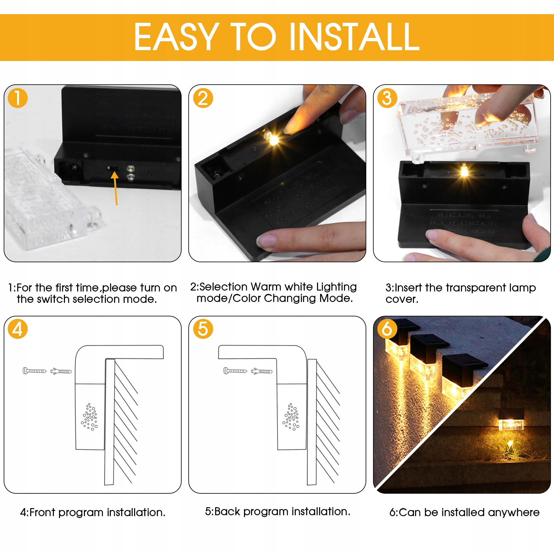 6 шт. СОЛНЕЧНАЯ СВЕТОДИОДНАЯ ЛАМПА САДОВАЯ ЛАМПА ЛЕСТНИЦА ТЕРРАСА + RGB 8 цветов