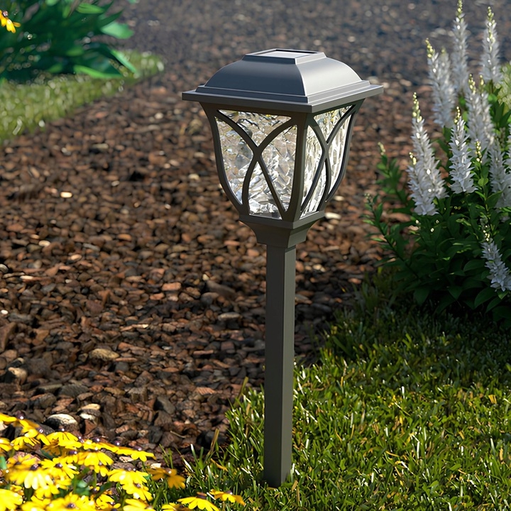 Прочный наконечник позволяет надежно и быстро установить лампу в землю, а водонепроницаемый корпус > гарантирует бесперебойную работу независимо от погодных условий!