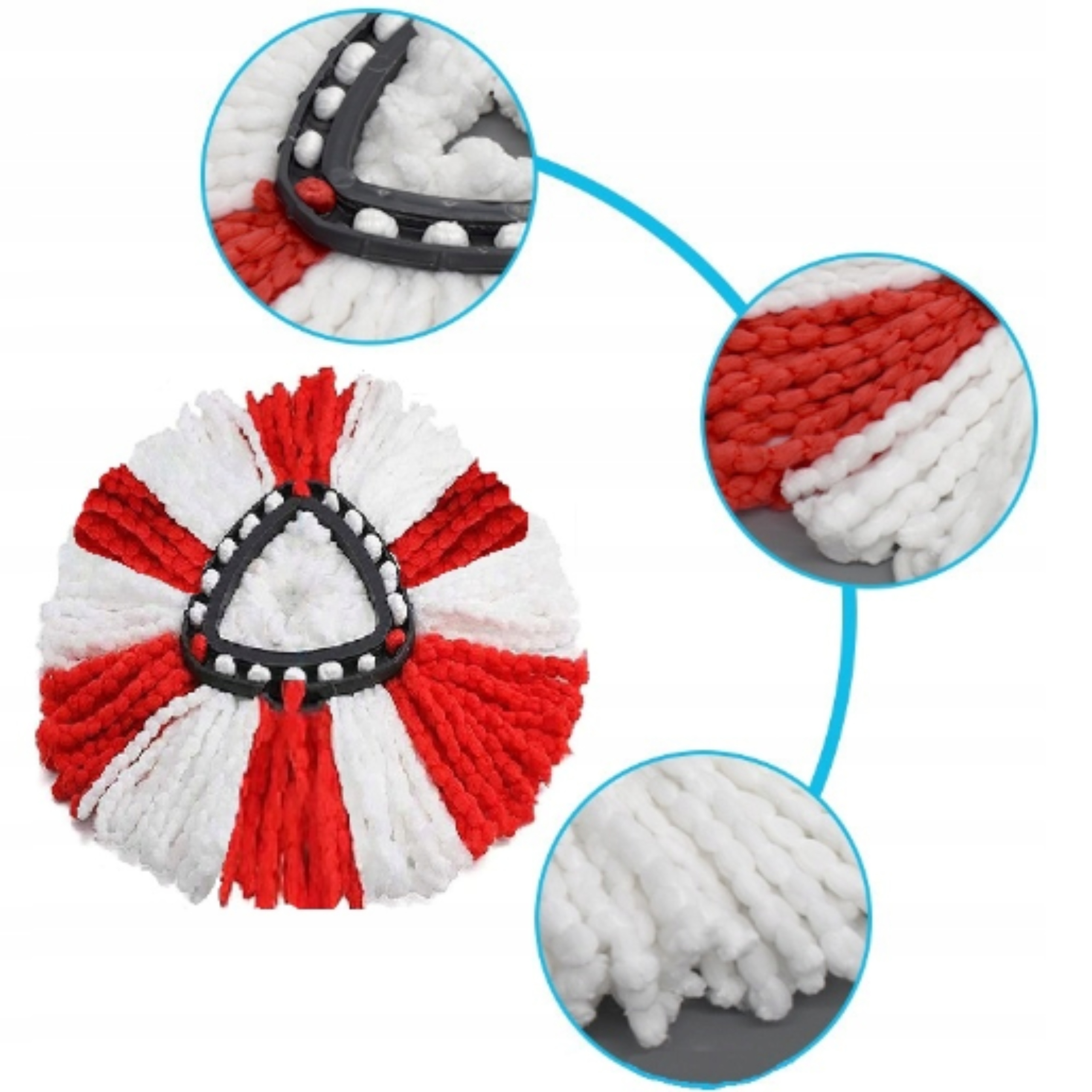 ✅Насадка для швабры 2-в-1 имеет два типа волокон: красные волокна собирают на 20% больше частиц грязи, а белые волокна удаляют даже стойкие загрязнения и дополнительно полируют пол.