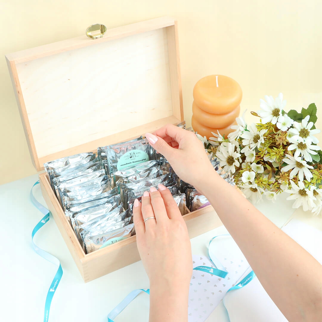 Подобного продукта у нас еще никогда не было! Красивая деревянная коробка Cup&You с прочной крышкой и целых 60 пакетиками любимого чая внутри. Настоящее богатство вкуса и аромата, которое всегда будет у вас под рукой. Наслаждайтесь широким выбором высококачественного листового чая, а затем дополните свою деревянную шкатулку новыми чайными пакетиками. Разнообразие вкусов и видов чая всегда удивит ваших гостей и сделает встречу с близкими приятнее. .