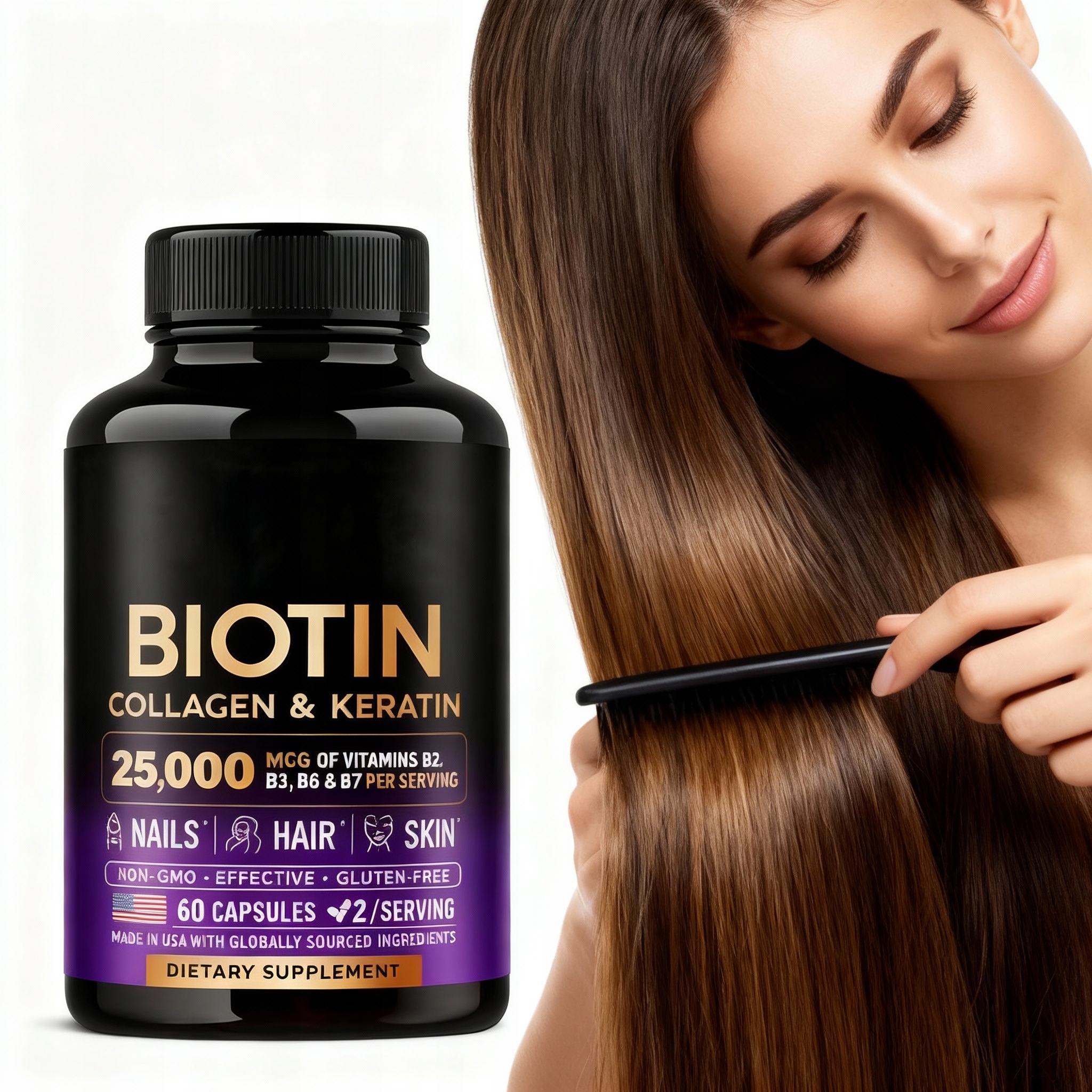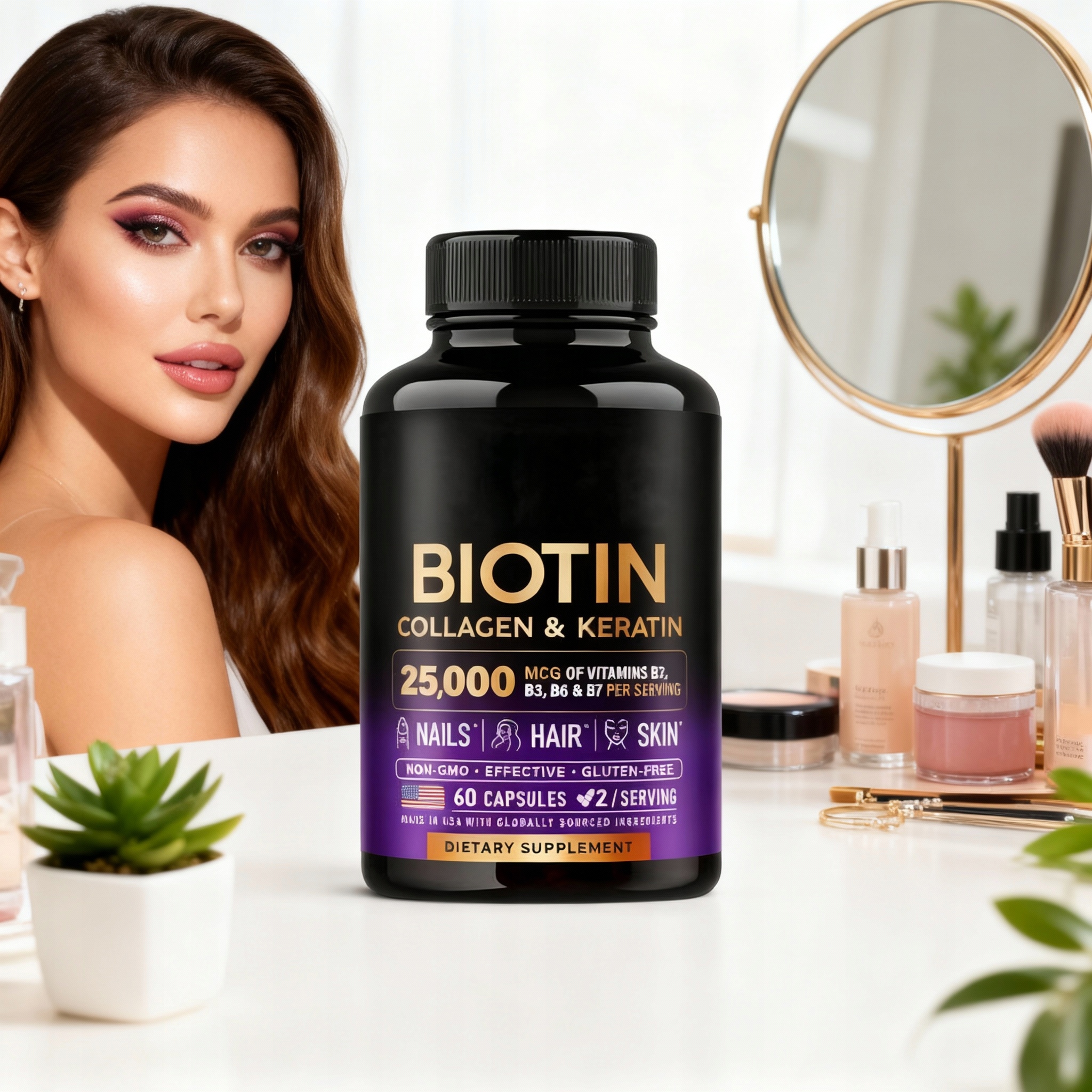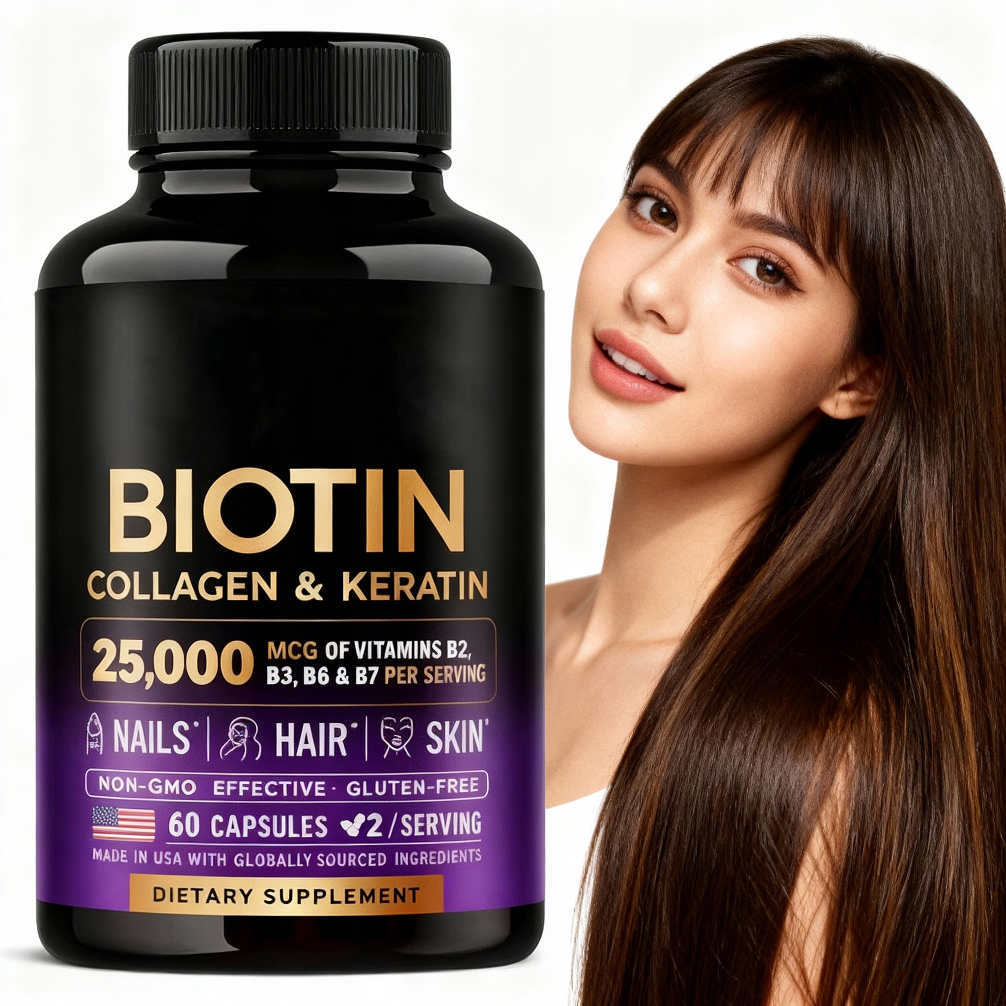 60 капсул биотина | Коллаген | Поддерживает рост волос и здоровье ногтей