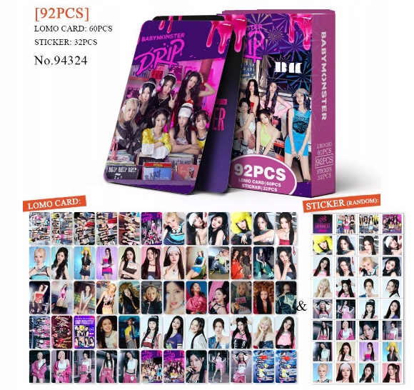 60 Lomo Kpop Cards Babymonster Новый капельный альбом Fotocarts Set+32 наклейки