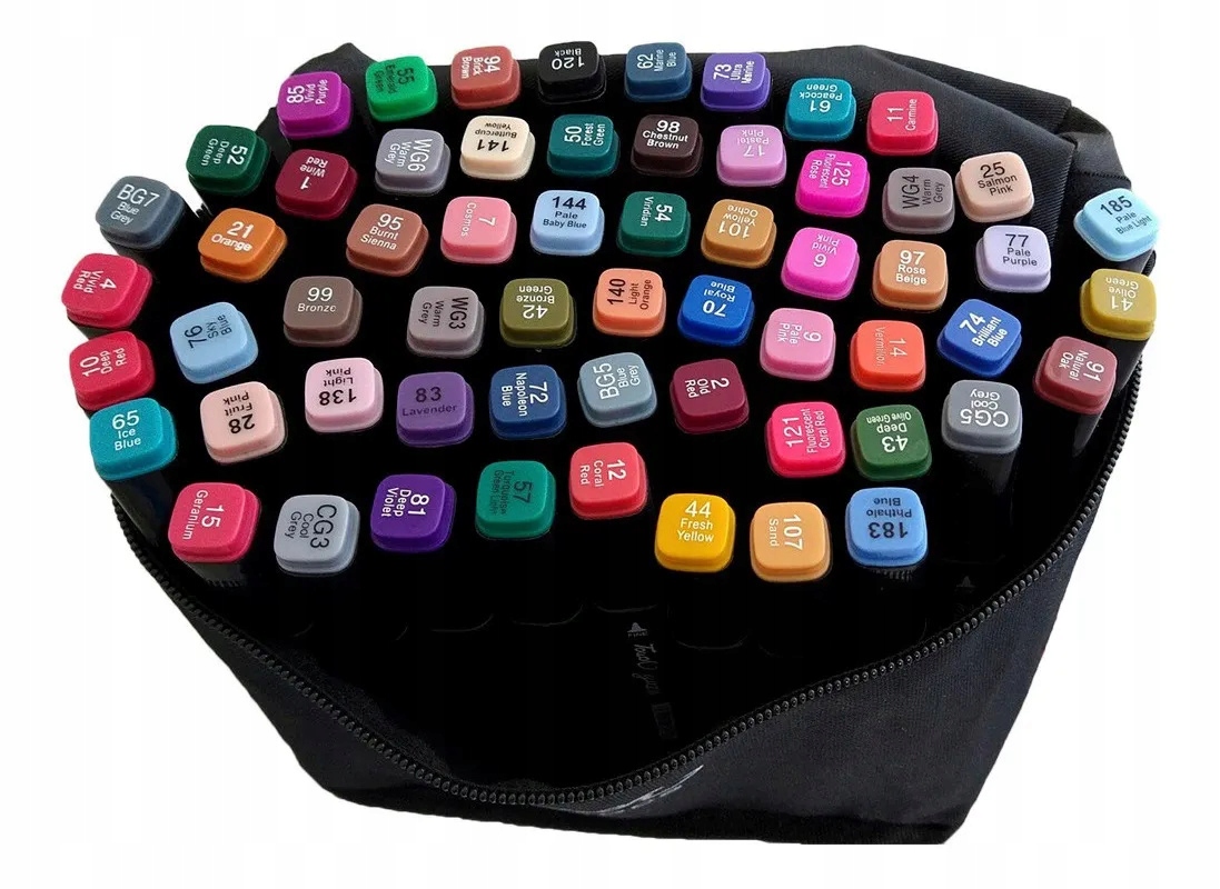 Набор из 60 маркеров в насыщенных, различные цвета - это предложение для всех, кто начинает свое приключение с рисунка, и для тех, кто рисует ежедневно. Отличная пигментация алкогольных чернил, содержащихся в колокольчиках, гарантирует, что рисунки, сделанные с ними, будут насыщенными, чистыми и не будут расти в течение долгого времени.