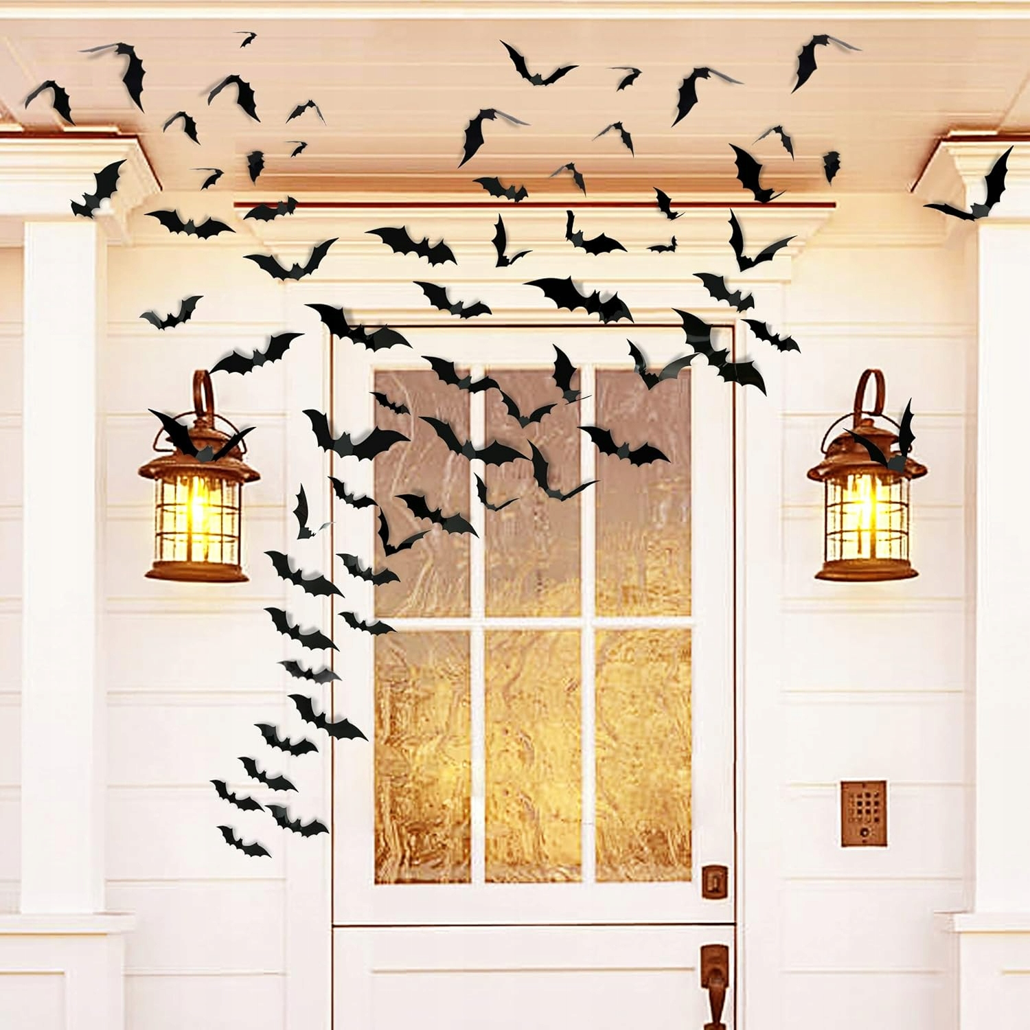 60 ШТ. 3D НАКЛЕЙКИ С ЛИТЯМИ ЛЕТУЧИМИ ПЕРЕДАЧАМИ ДЛЯ УКРАШЕНИЯ СТЕН ВЕЧЕРИНКИ ХЭЛЛОУИНА