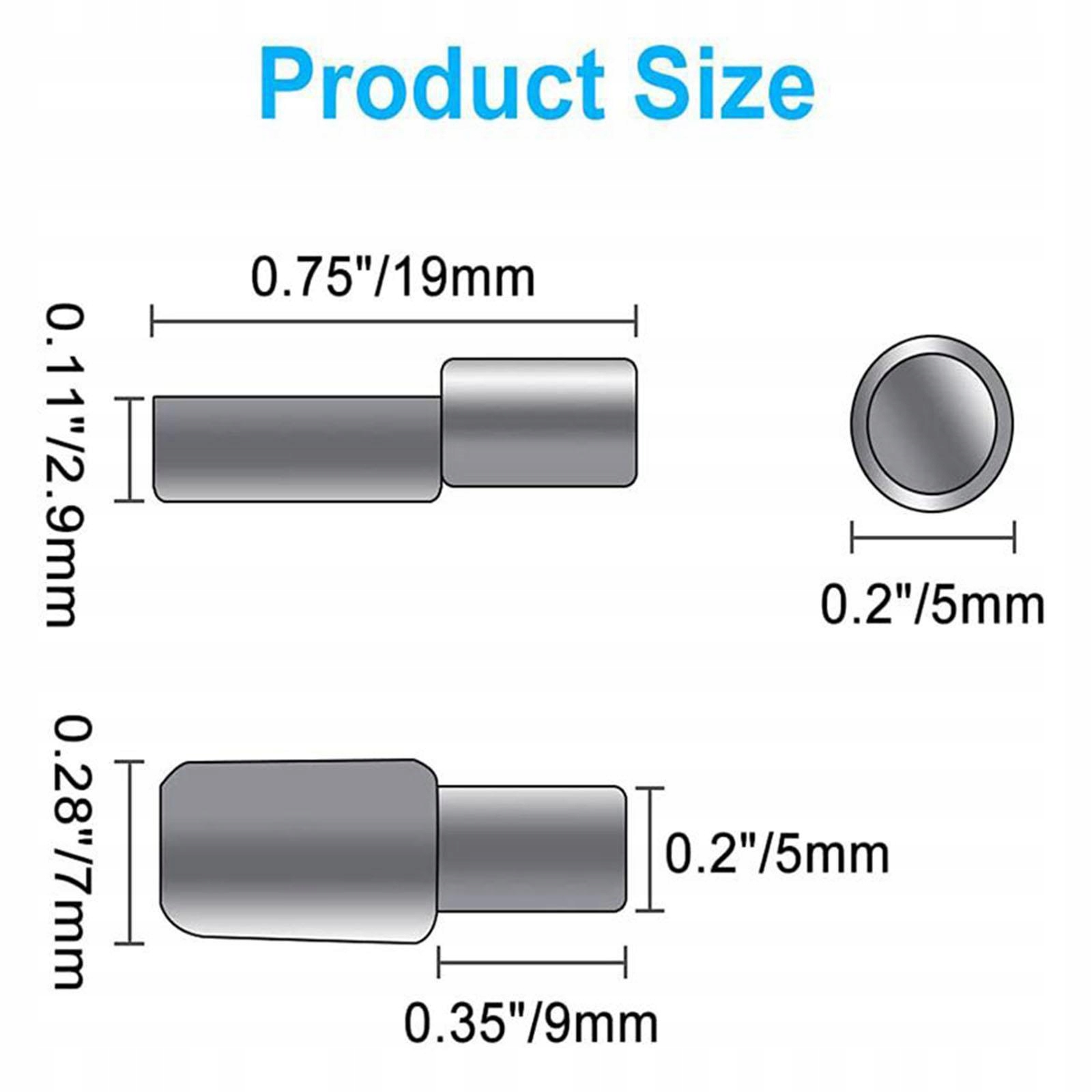 Размеры: диаметр 5 мм/0,20 дюйма, высота 19 мм/0,75 дюйма.