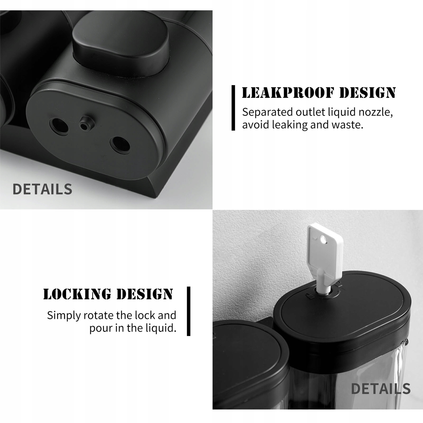1. [Дизайн блокировки] Диспенсер мыла в ванной комнате легко чистить и легко дополнять, просто поверните замок и вылейте жидкость.