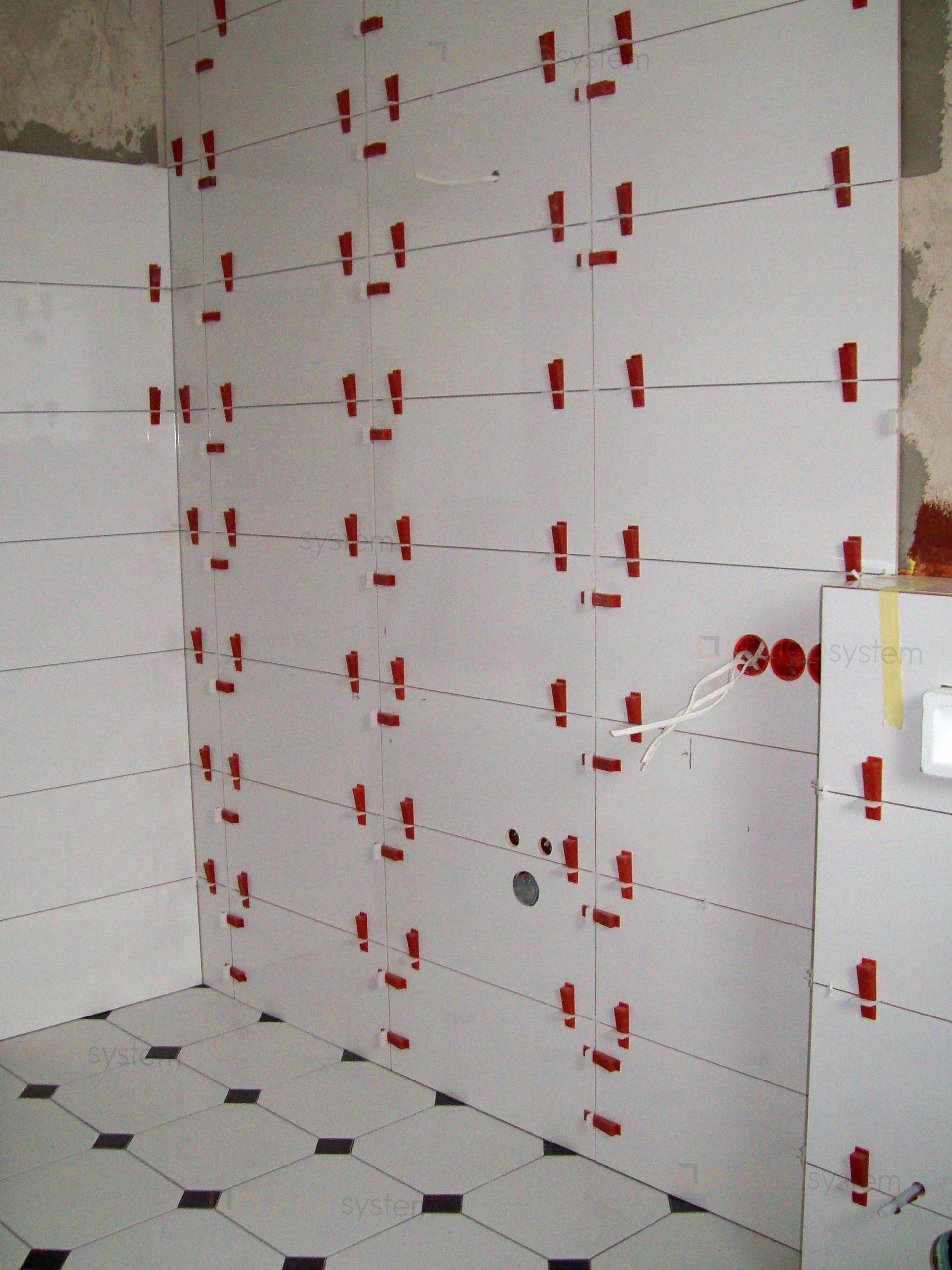 Преимуществом набора является ширина клин, благодаря которому можно легко установить клипсы на три и даже четыре шва плитки.