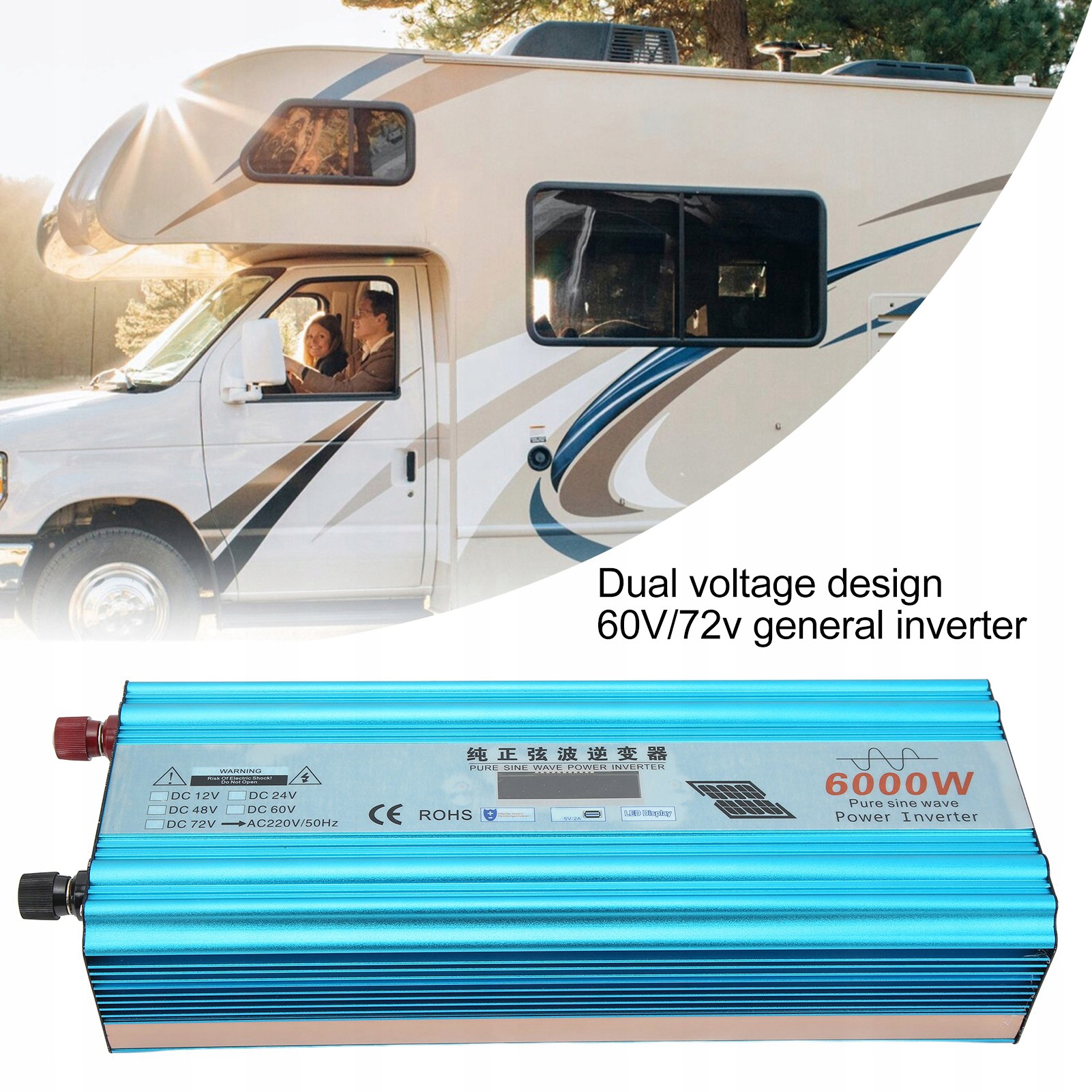 4. Безопасность использования: преобразователь напряжения имеет много защитных функций, таких как защита от перегрузки, низкое напряжение, высокое напряжение, перегрев и короткий замыкание.