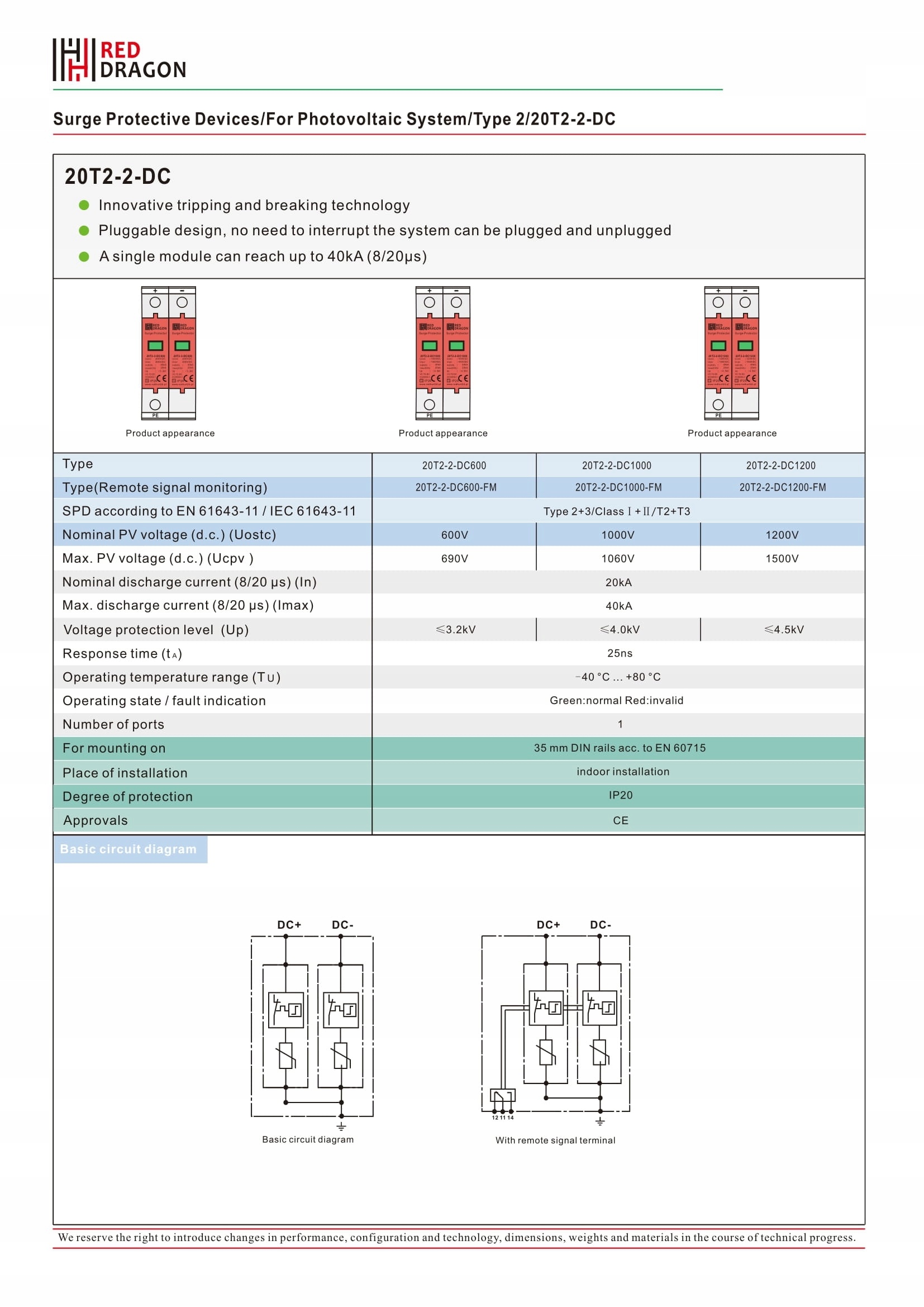 Обеспечьте надежную защиту своих двухфазных установок постоянного тока с помощью нашего усовершенствованного 2-полюсного разрядника постоянного тока 600 В. Наш высококачественный продукт был специально разработан для эффективной нейтрализации и устранения вредных перенапряжений, которые могут повредить ваше ценное электрооборудование.