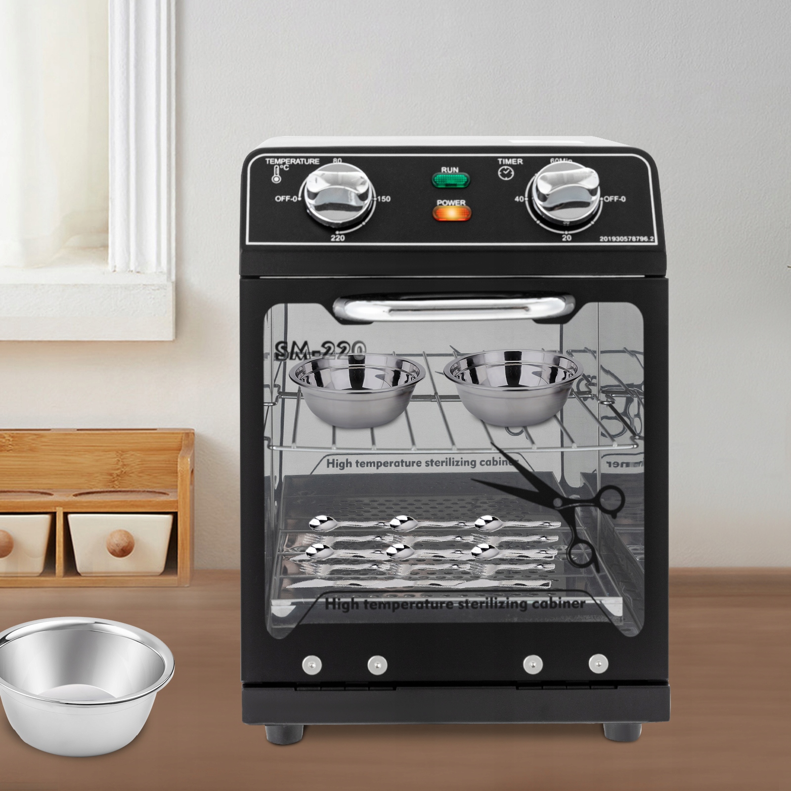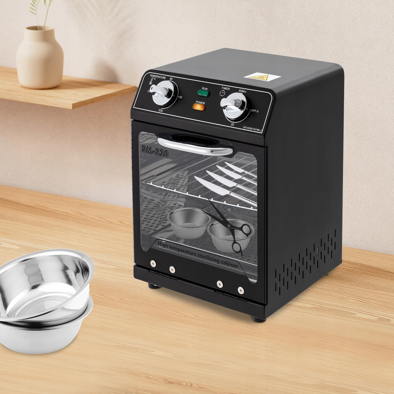 - Благодаря своей мощной функциональности и практичности этот высокотемпературный стерилизатор покорит Ваше расположение! Высокая мощность 600 Вт может достигать максимальной температуры дезинфекции 220 градусов, обеспечивая комплексную дезинфекцию. Он может установить время в пределах 0-60 минут, что обеспечивает вам больше удобства. Емкость 8,45 QT, 1 лоток и 1 подставка внутри позволяют одновременно дезинфицировать большое количество различных косметических инструментов. Это ваш идеальный выбор!
