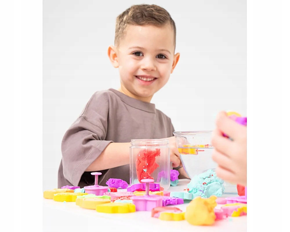 мягкий, пушистый и в то же время растягиваться. Можно сформировать причудливые фигурки с большим количеством деталей, в том числе корабли и водных животных, которые - в неизменной форме - будут плавать на воде. Он устойчив к воздуху и солнечному свету, благодаря тому, что созданные из него творения не высыхают.