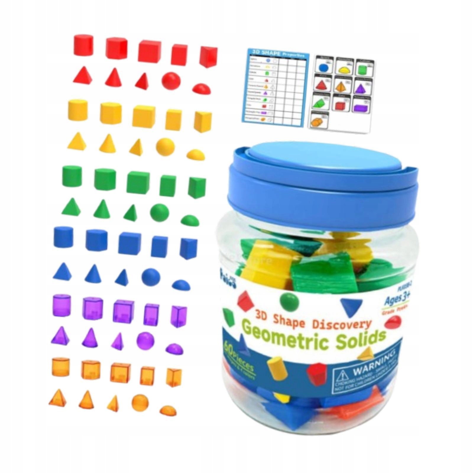 "60x 3D Геометрические блоки твердых веществ набор, разноцветное обучение свету"