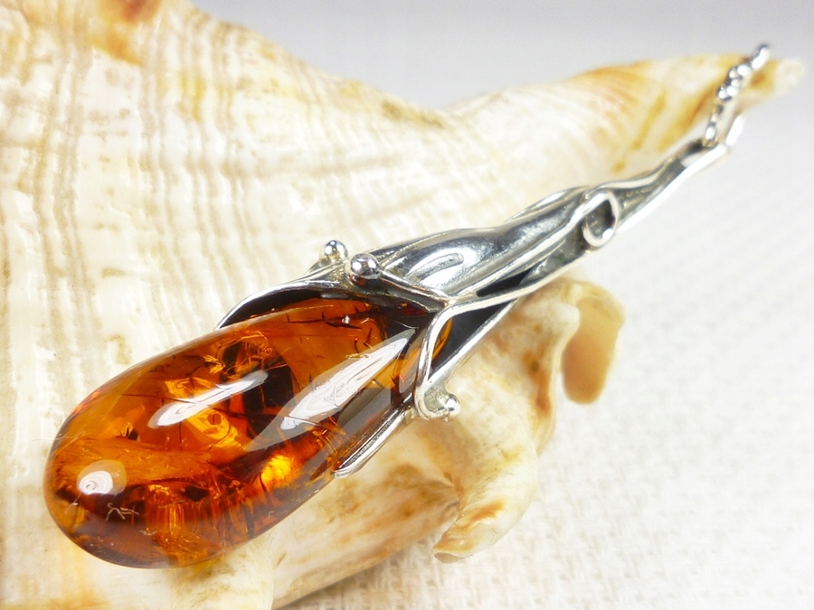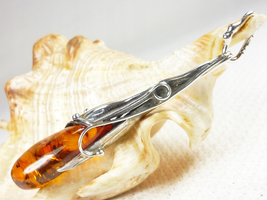 610/113 Срібна підвіска з бурштином -HAND MADE