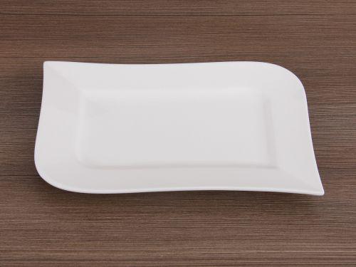 Мраморно-белый фарфор сочетается с выразительной квадратной или волнистой формой тарелок.
