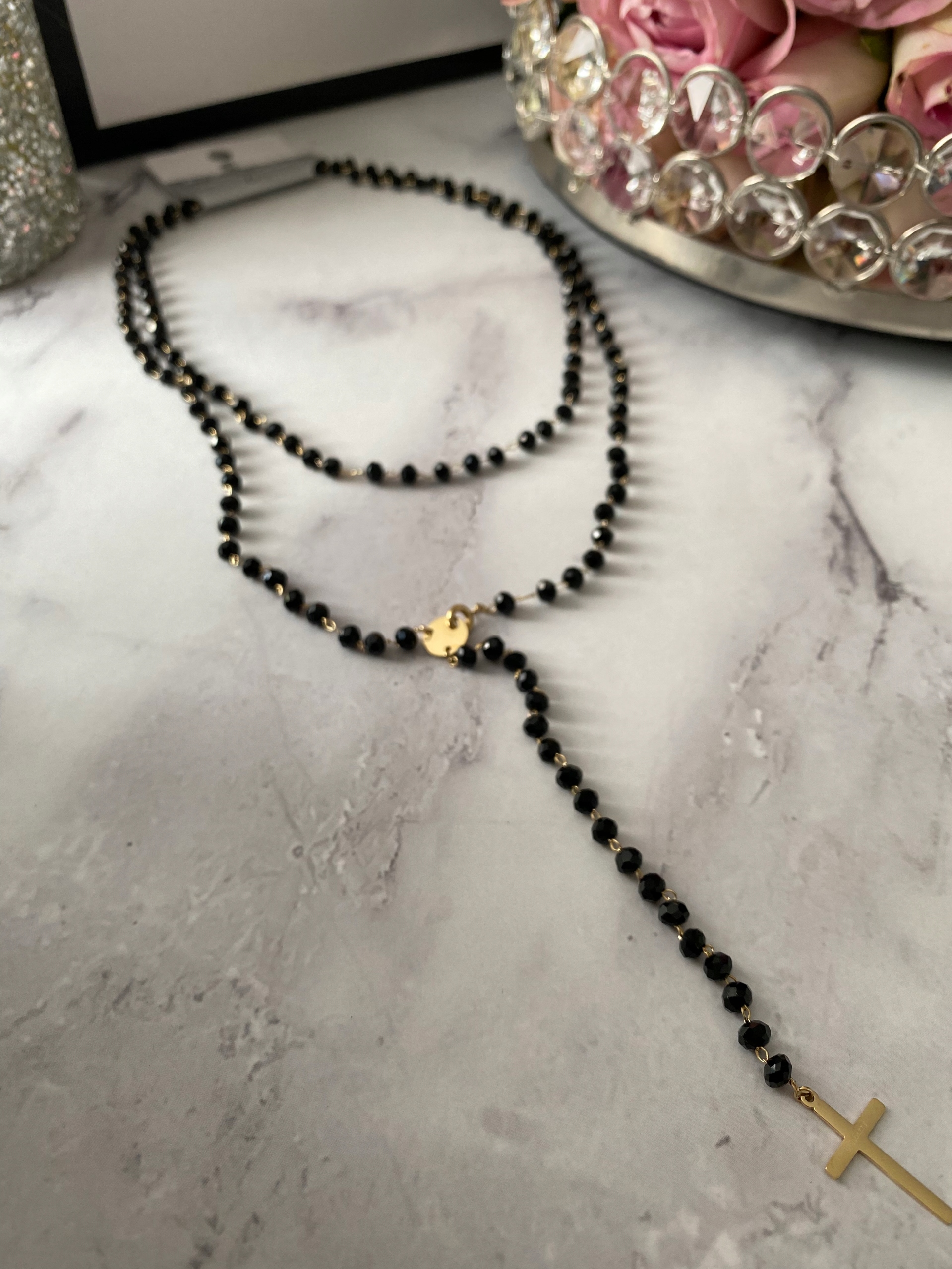 Можно носить «дважды» - как показано на фото, или как одно длинное колье.