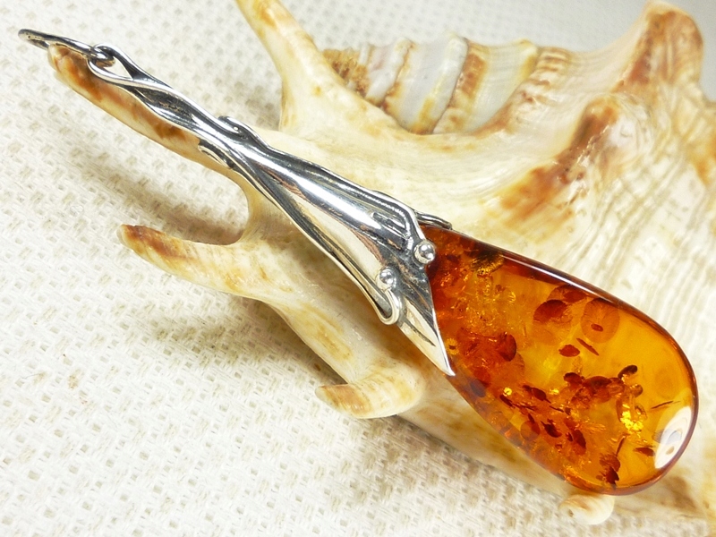 Серебряный кулон 620/307 с янтарем - РУЧНАЯ РАБОТА