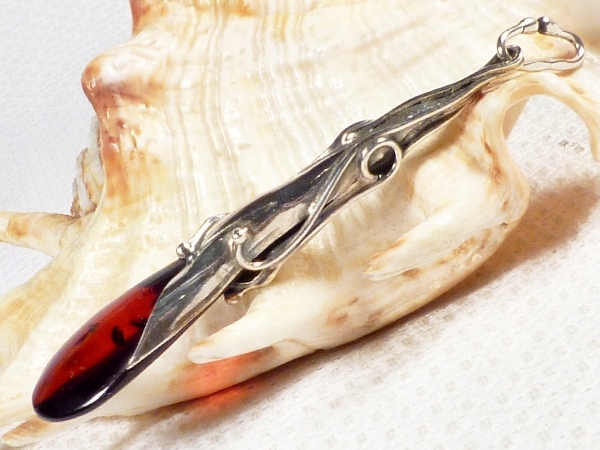 622-10 Wisiorek Srebro z Bursztynem - HAND MADE -