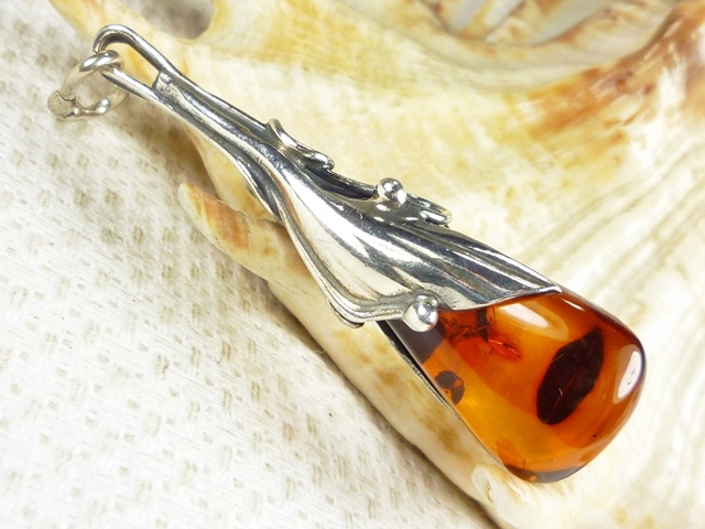 622/23 Срібний кулон з бурштином - РУЧНА РОБОТА -