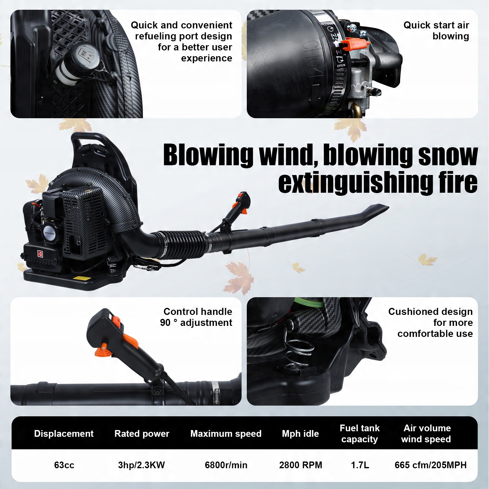 63CC Газова рюкзакова повітродувка, 2-тактний снігоочисник, чорний