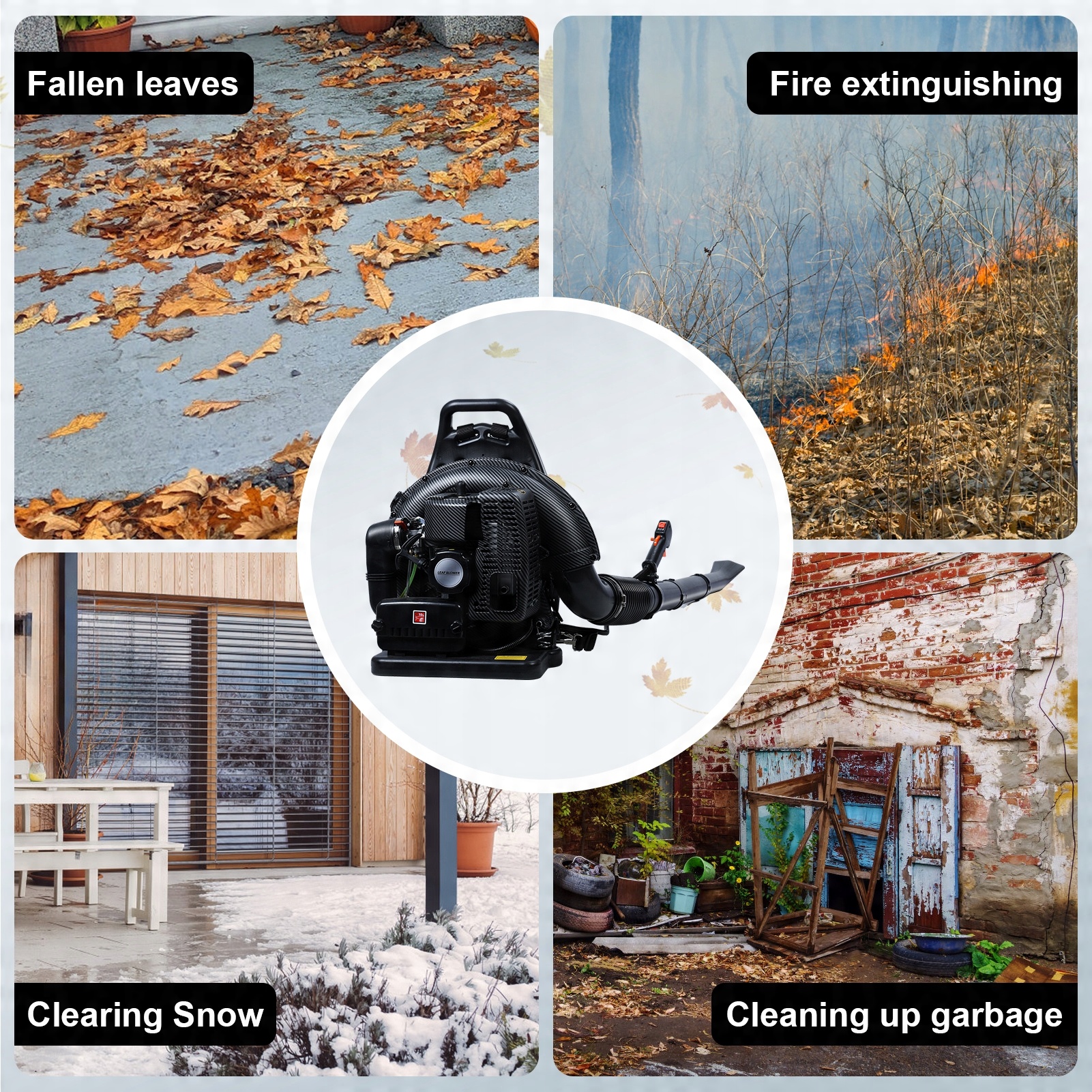 Широкое применение: Газовая воздуходувка представляет собой легкий, гибкий и эффективный, экологически чистый инструмент, в основном используемый для уборки городских дорог, подметания опавших листьев, дорожной пыли, мусора и т. д. Его также можно использовать для уборки снега в зимних теплицах и строительство дорожных стен для обеспыливания основного слоя перед укладкой или покраской асфальта.