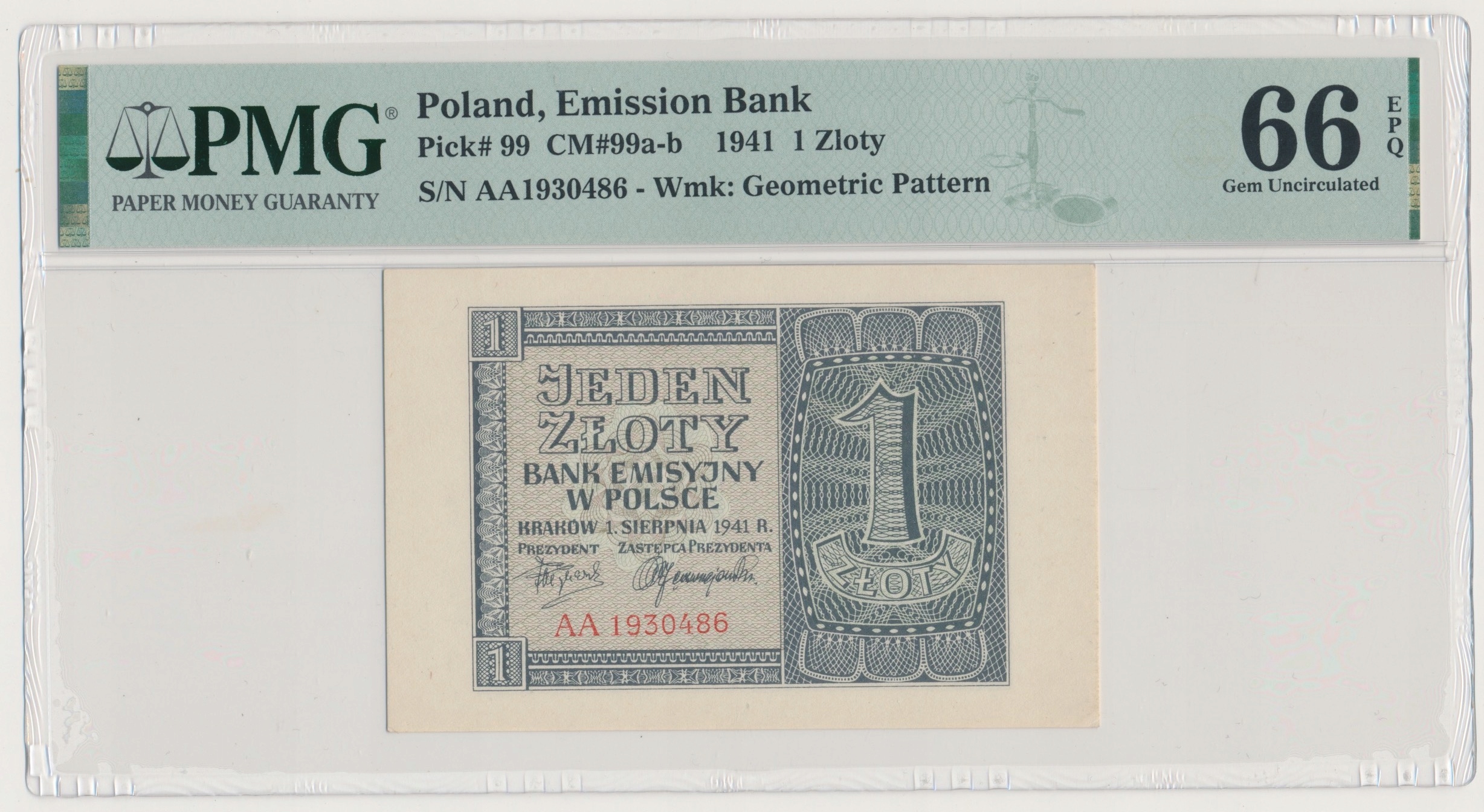 6562. 1 злотих 1941 - AA - PMG 66 EPQ