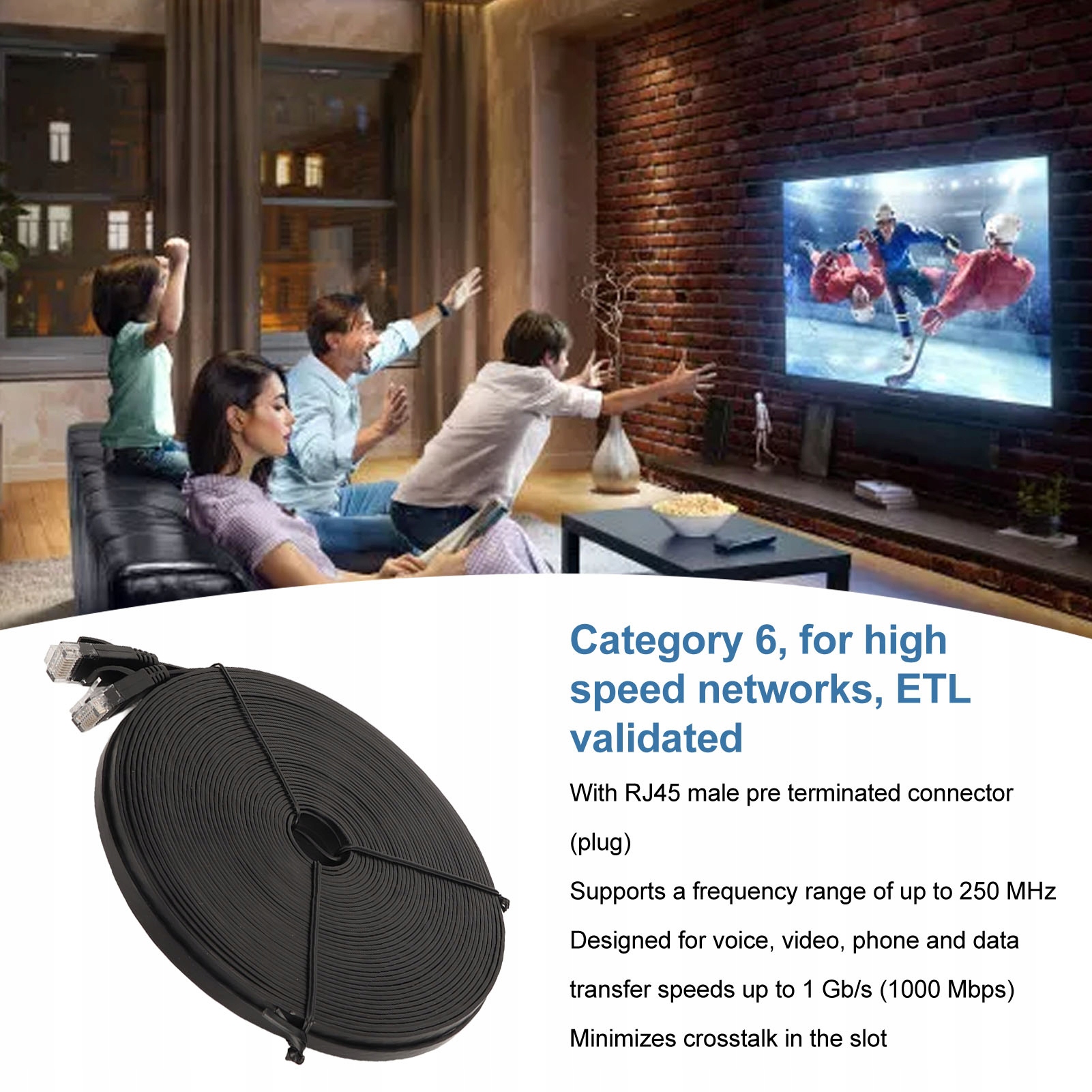2. 1000 Мбит/с: сетевой кабель CAT6 поддерживает диапазон частот до 250 МГц и предназначен для передачи голоса, видео, телефона и данных со скоростью до 1 ГБ в секунду (1000 Мбит/с), сводя к минимуму перегрузку розетки.