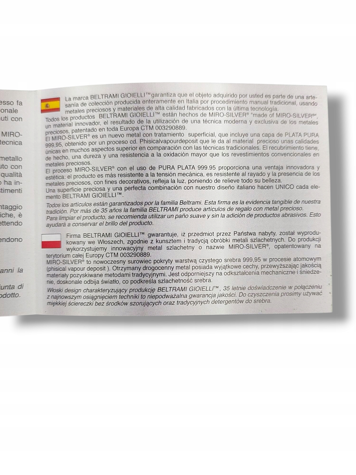 - Сертификат подлинности от производителя Beltrami s.r.l.