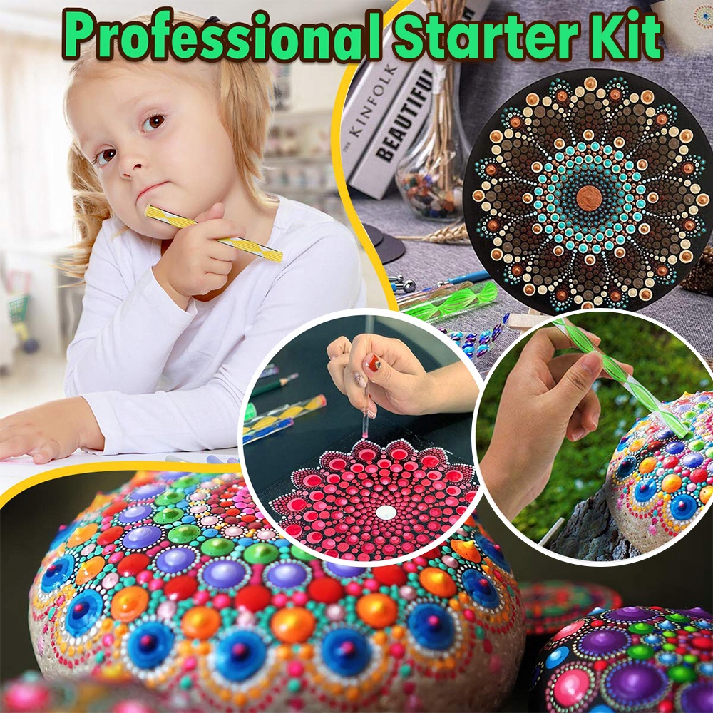 69 Набор инструментов для точек мандалы с плоскими щетками, поддержкой и сумкой