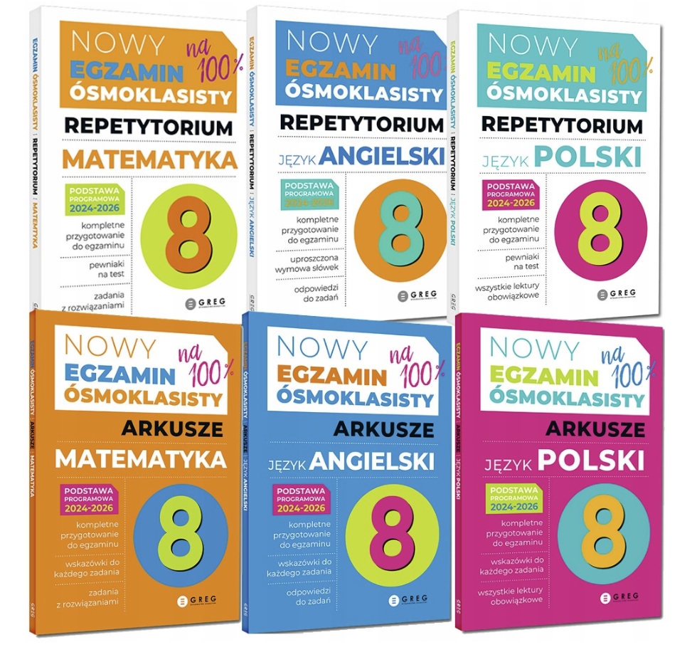 Грегский издательский дом разработан в соответствии с основной учебной программой и оригинальной CKE и постоянно обновленными листами. Благодаря этому, обучение с этой книгой эффективно и -без стресса. Выберите последнее повторение математики и пропустите его на 100%!
