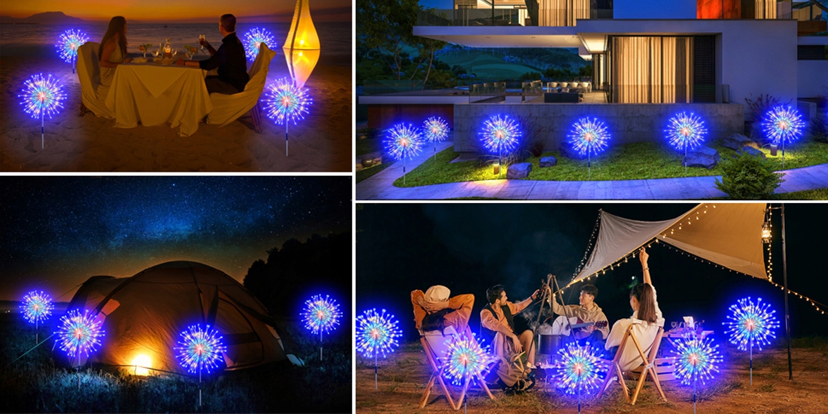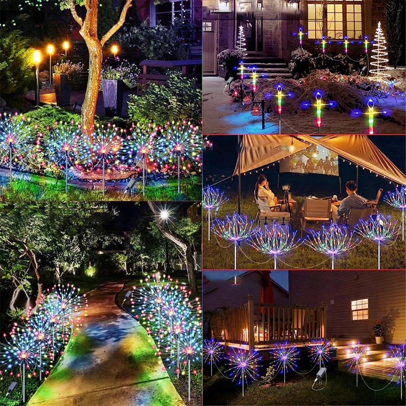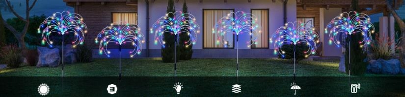 Фейерверки поставляются с пультом дистанционного управления, используя пульт дистанционного управления, вы можете отрегулировать 4 уровня яркости и 8 режимов мига Солнце на солнце в дне солнца и автоматически загорается и мигает ночью.