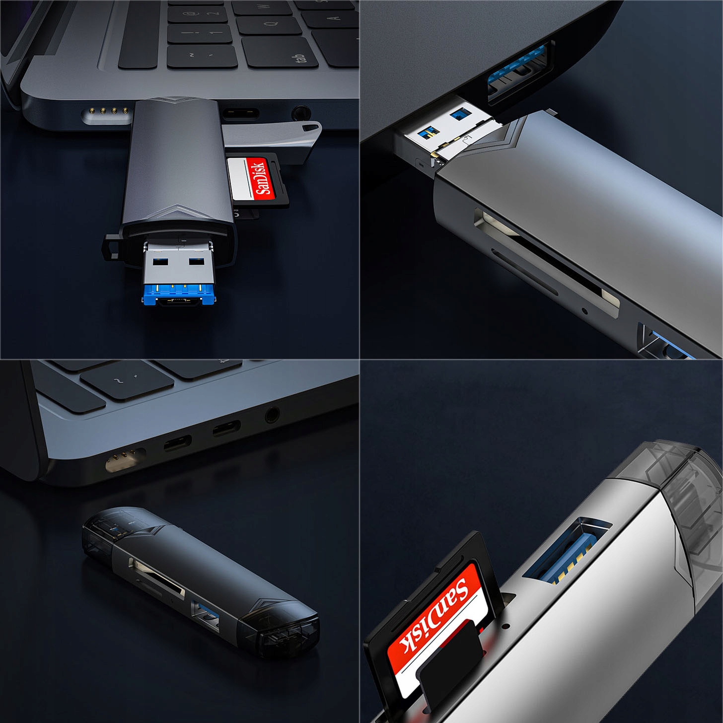 ✨ USB3.0 Reader Card с USB-портом, портом Micro-USB и портом типа C, благодаря которому карты снятой комбинат с планшетами и смартфонами, которые поддерживают функцией OTG.