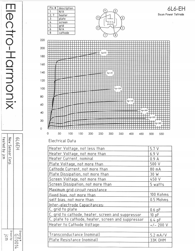 - Создан по образцу классической «черной лампы» RCA 6L6GC.