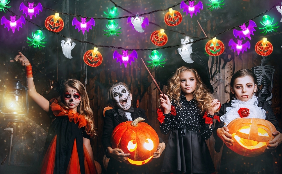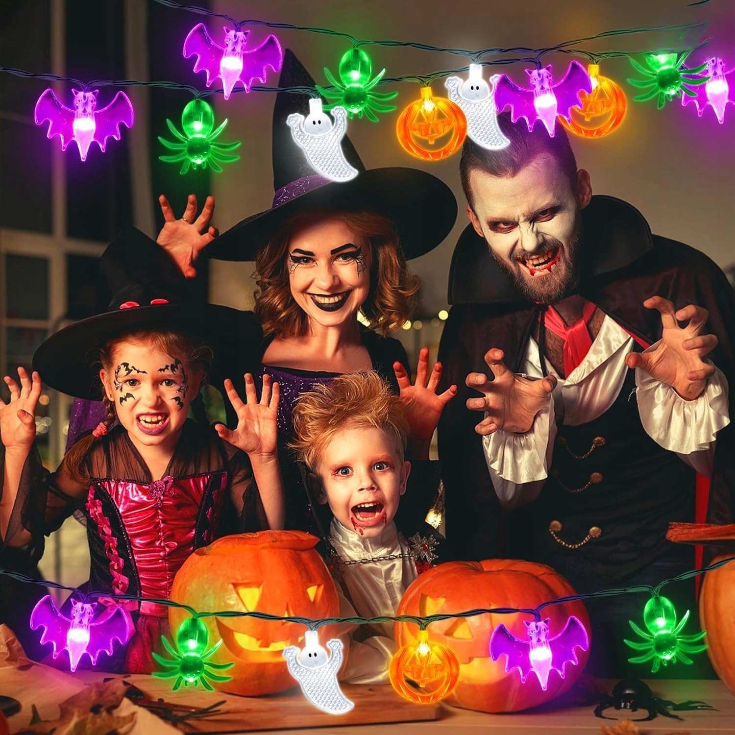 6-метровые гирлянды с 40 светодиодными лампочками в форме тыквы, летучей мыши и призрака для Хэллоуина.