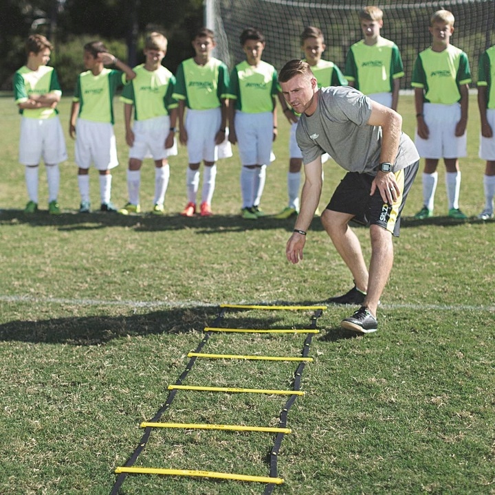 Тренировочная лестница — это устройство, используемое спортсменами во всем мире. Это помогает в первую очередь улучшить физическую форму, координацию движений, ловкость и динамику. Лестницу можно использовать для командных и индивидуальных тренировок. В комплект входит чехол, который облегчает транспортировку и предотвращает раскручивание лестницы и ее запутывание с другим спортивным инвентарем, например в багажнике автомобиля.