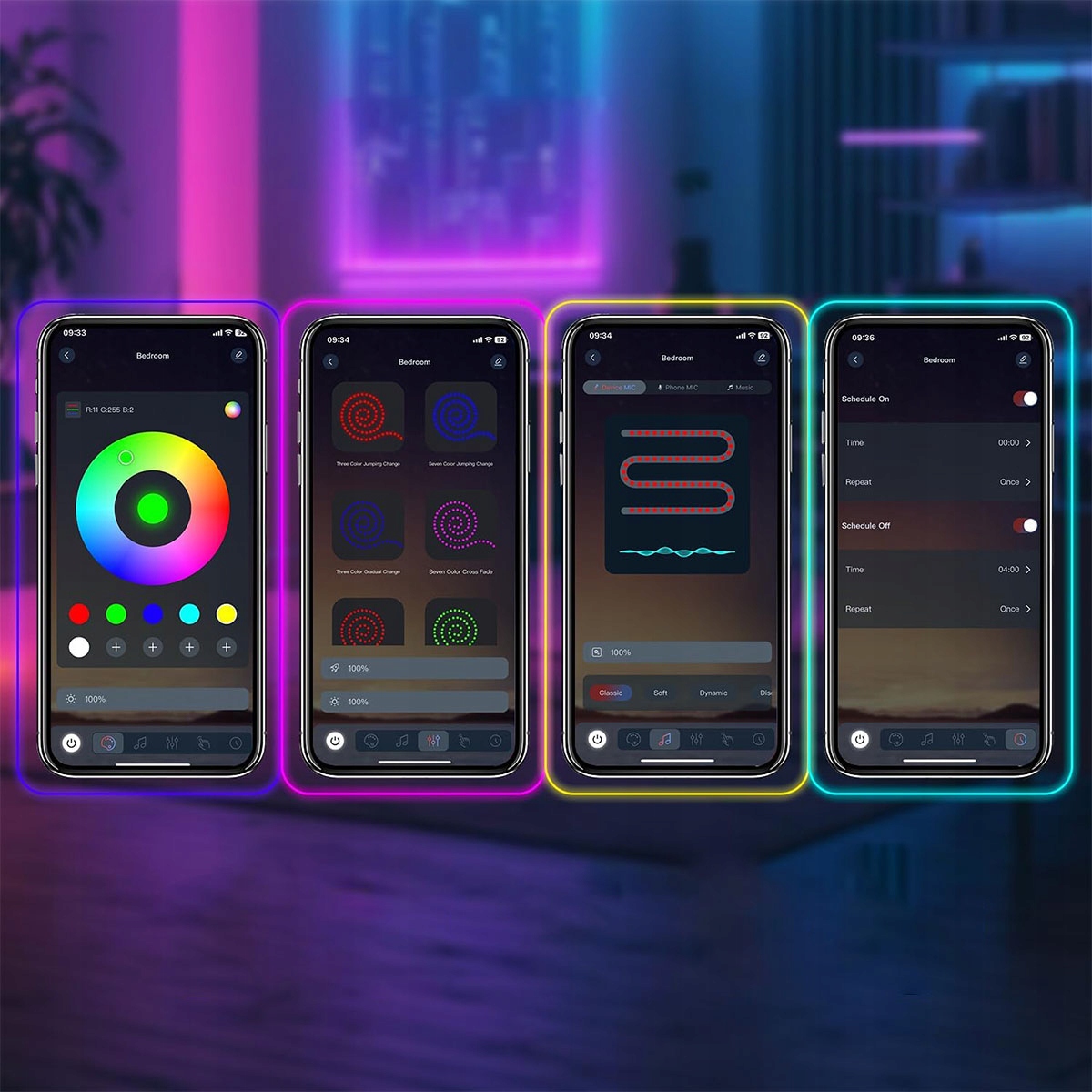 Вы также можете использовать функцию таймера для включения всех светодиодных неоновых ламп в комнате вместе с будильником.