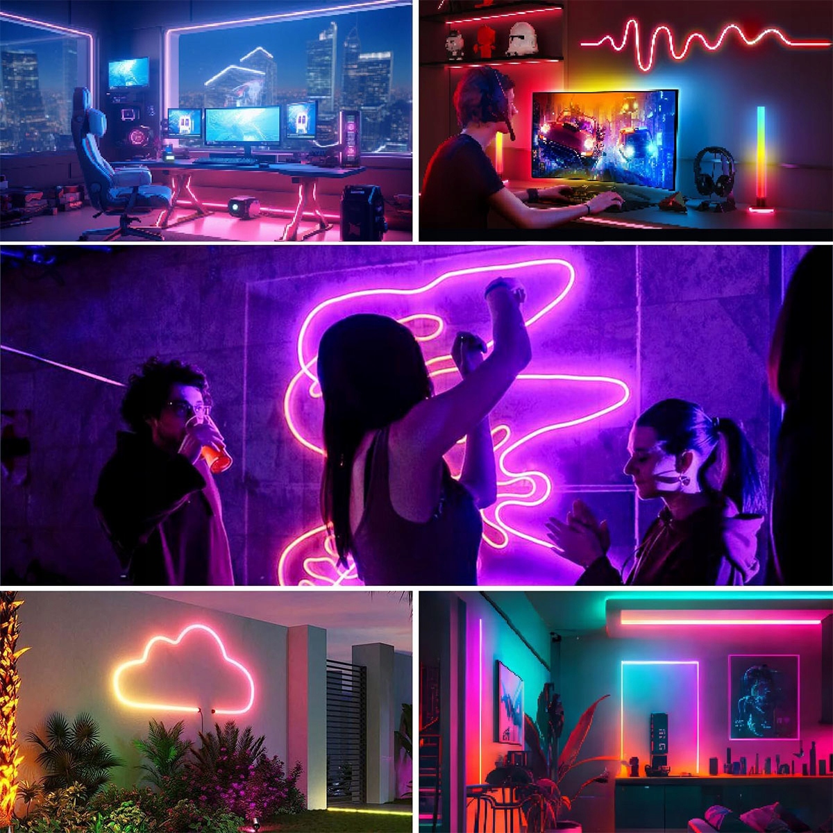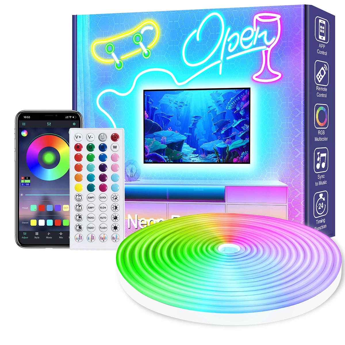 Неоновые светодиодные ленты RGB длиной 6 м, синхронизация с музыкой, гибкие ленты 24 В с приложением/дистанционным управлением, для использования в спальне, гостиной и на открытом воздухе