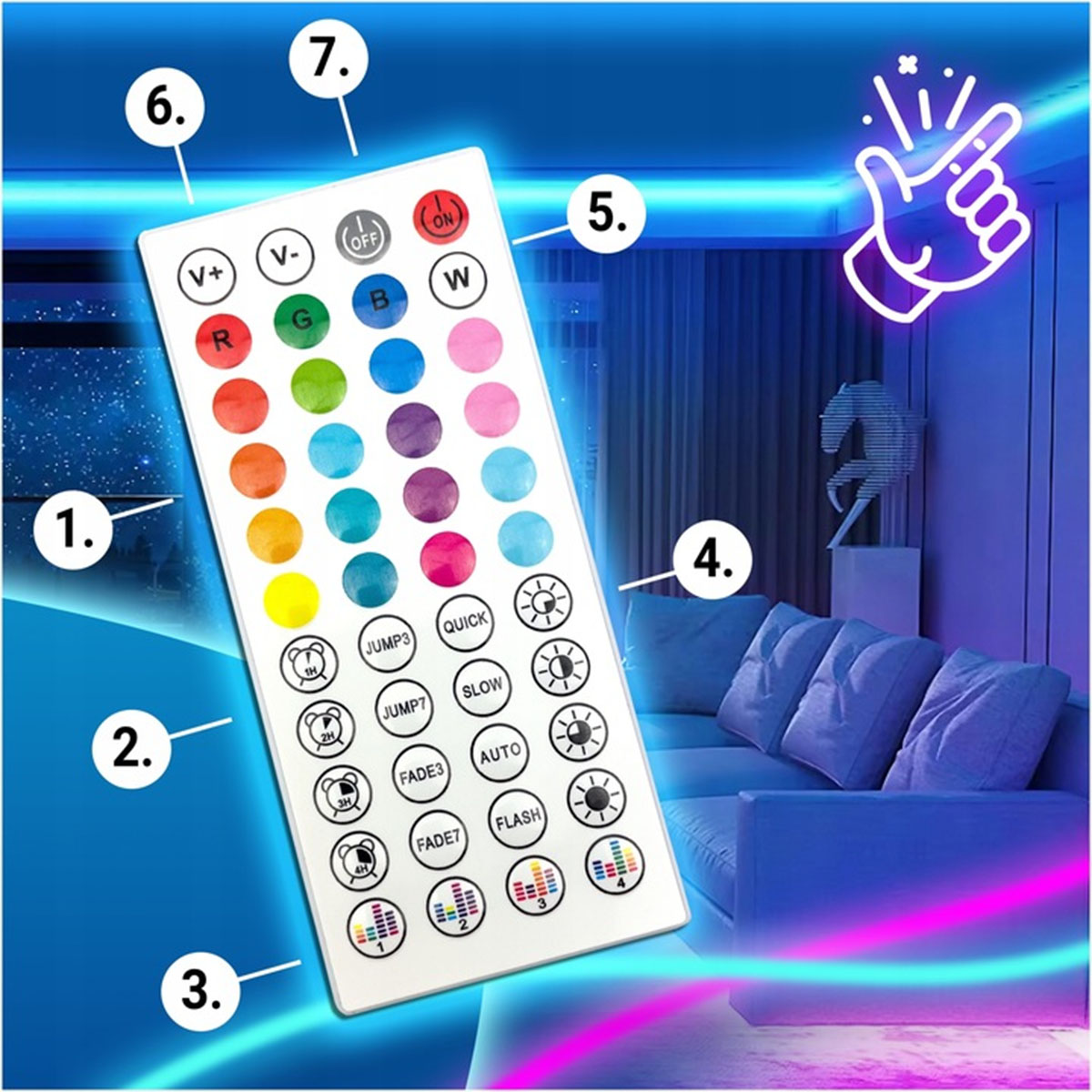 6️⃣ Включите ленту с помощью пульта или приложение.