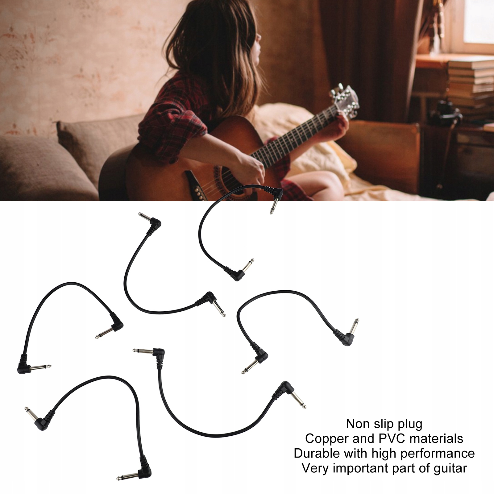 3. Прочный материал: шнур электрогитары имеет нескользящую вилку. Медь и ПВХ долговечны и обладают высокими эксплуатационными характеристиками.