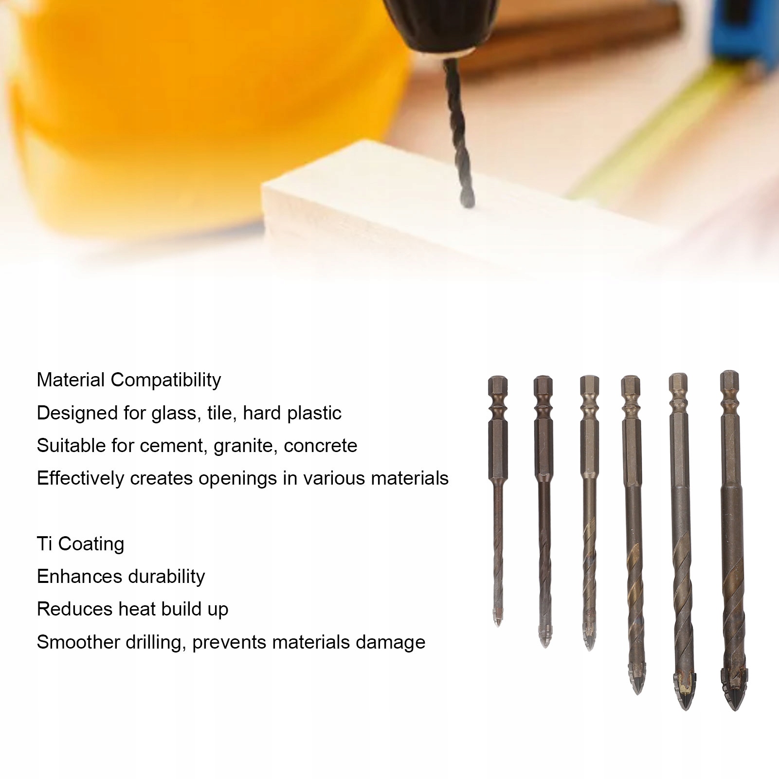 3. Голландский Ti: Powas ti укрепляет проницаемость битов тренировки, а также сводит к минимуму тепловое накопление, стимулируя разговорчивое бурение и предотвращение повреждения материальных поверхностей