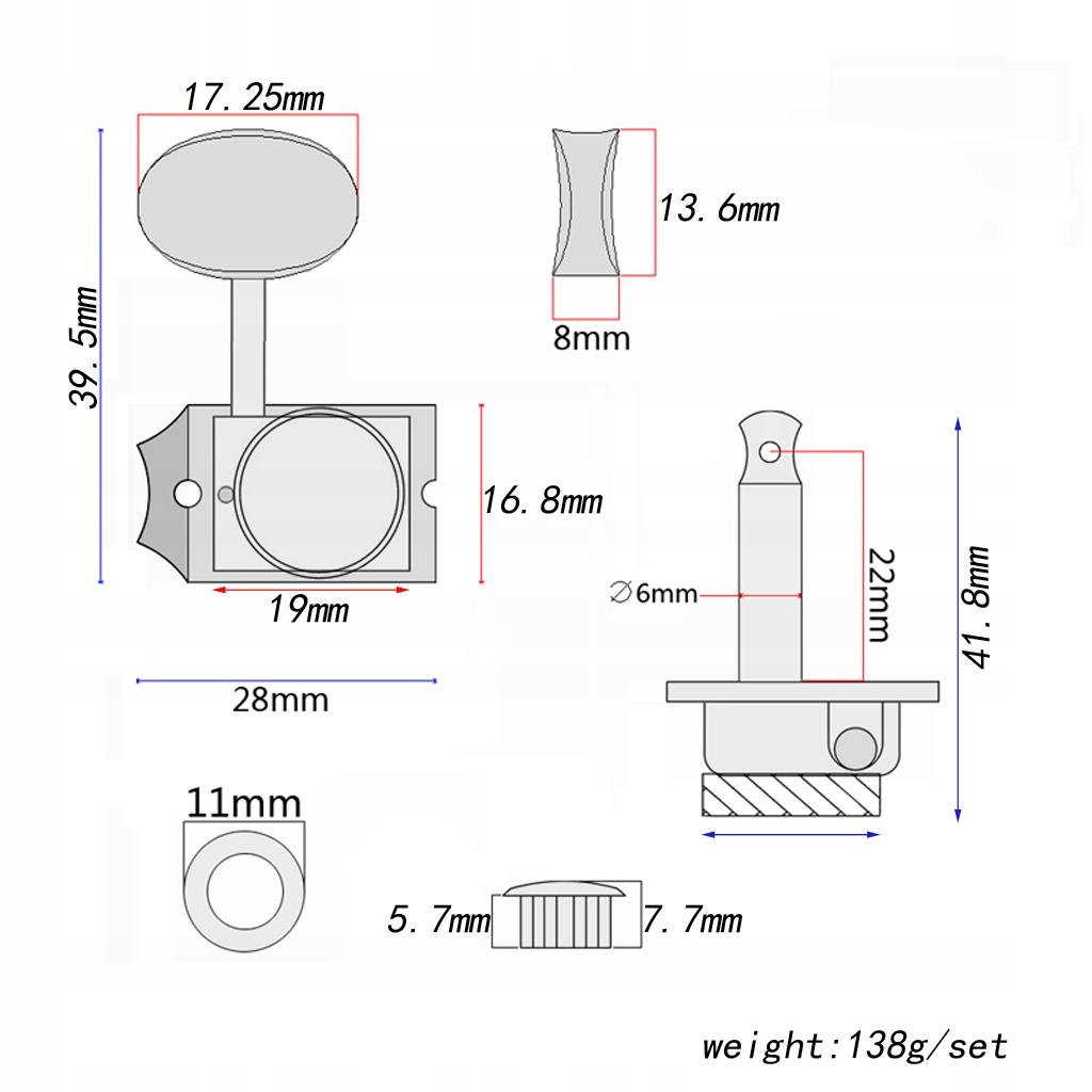 Втулка: прибл. Диаметр 8 мм, примерно. Отверстия для тюнера диаметром 8 мм на грифе.