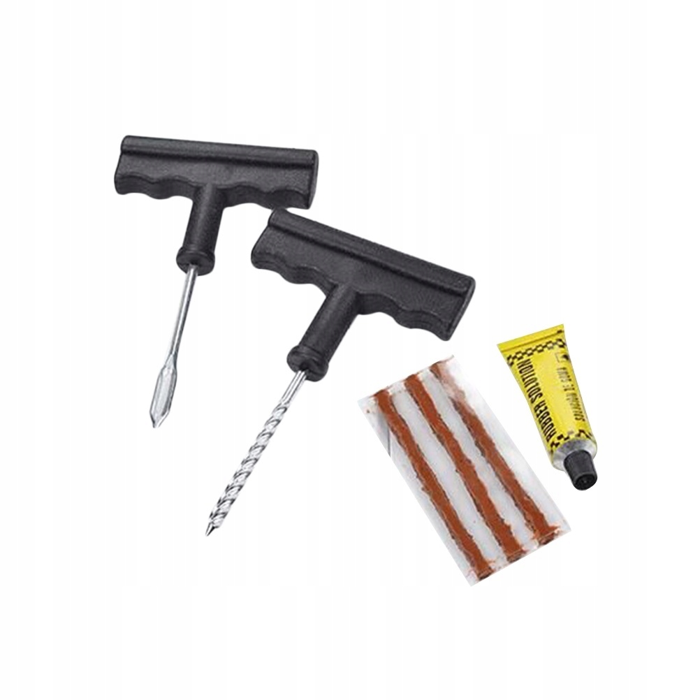 ✅Включает 3 резиновые ремонтные полоски, 1 рашпиль, 1 иглу для вставки проушины, 1 клейкий клей.