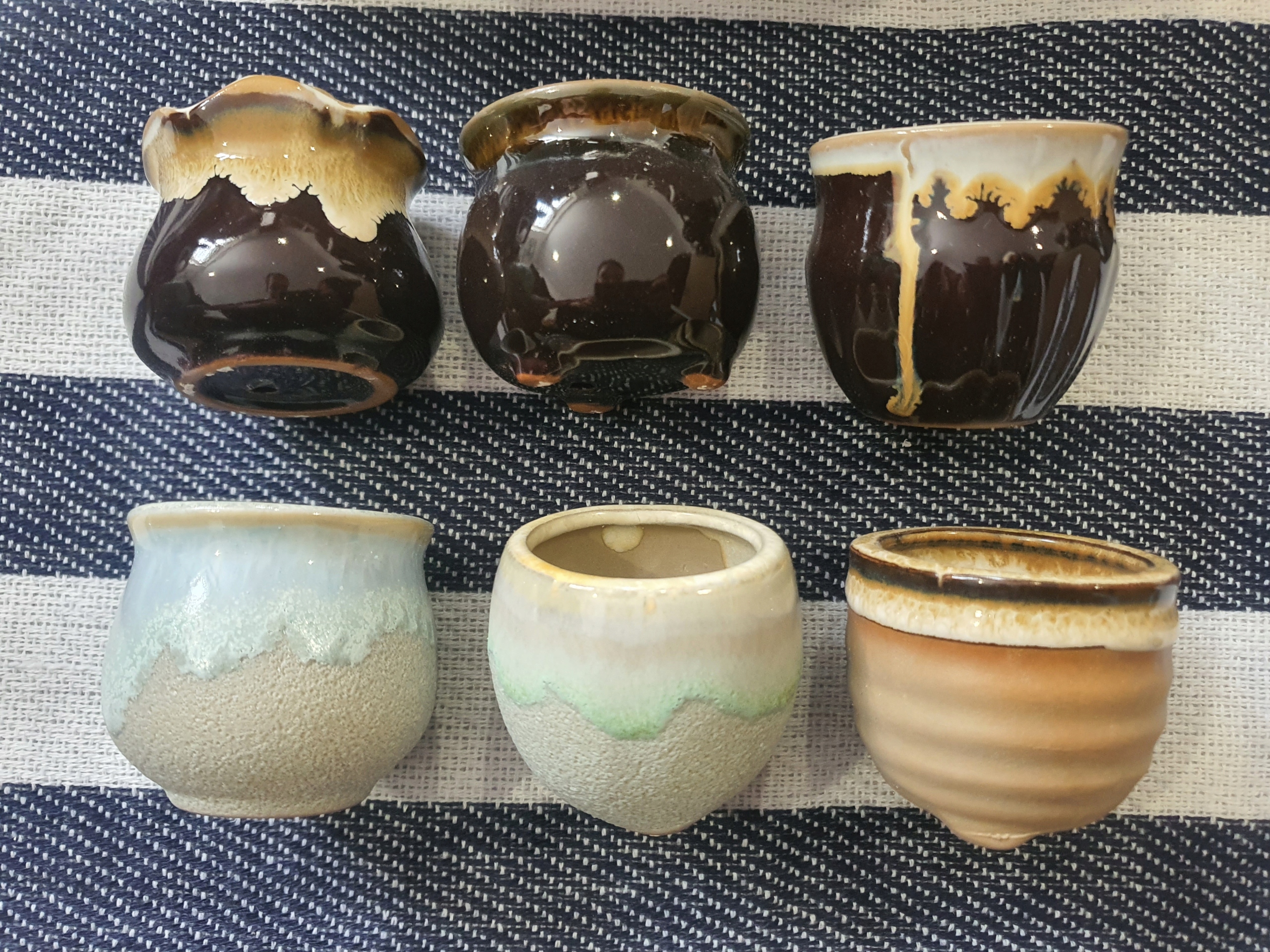 6шт маленькі керамічні горщики для сукулентів коричнево-сірі 6,5 см ПРОЧИТАЙТЕ ОПИС!