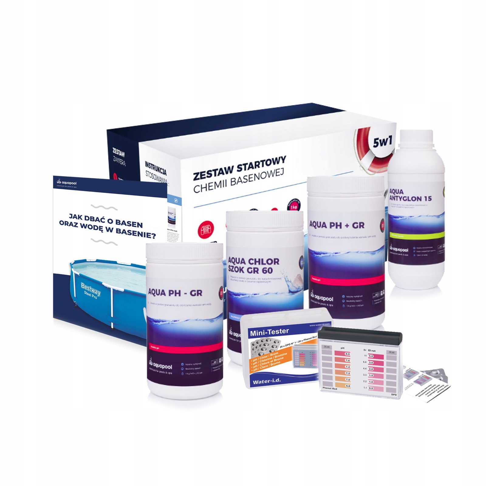 ОПЦИЯ! Стартовый набор химии для бассейнов, предназначенный для небольших каркасных и расширительных бассейнов от таких компаний, как Bestawy и Intex.