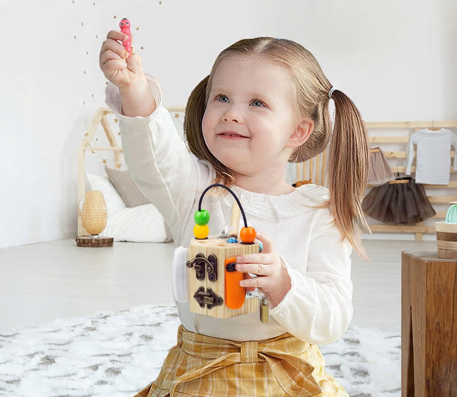 - - Деревянная интерактивная игрушка имеет 8 сторон. Этот высококачественный деревянный кубик включает в себя противоугонный замок и ключ, переключатель, пружинную защелку, замок для деревянной коробки в стиле ретро, бусину, шестерню, колокольчик, игрушку для рыбалки, зеркало, шнурок и т. д. Самое замечательное в этих дорожных игрушках то, что вы можете он открывается как коробка с зеркалом внутри.