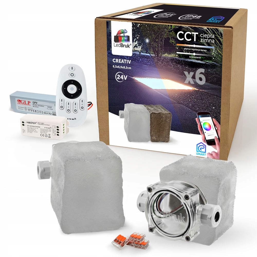 Комплектующие: Creativ - 6 шт., блок питания IP67 - 1 шт., диммер с пультом Milight