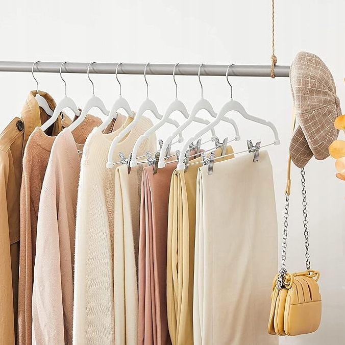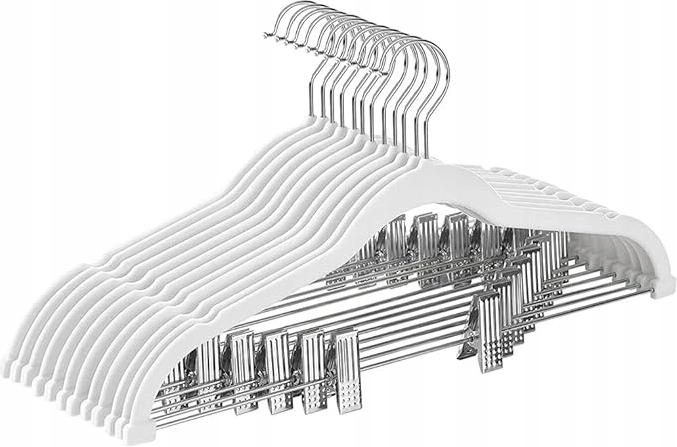 6x БІЛА ВЕЛЮРОВА ВІШАЛКА З ЗАЩИПАМИ ДЛЯ БРЮК І СПІДНИЦІ