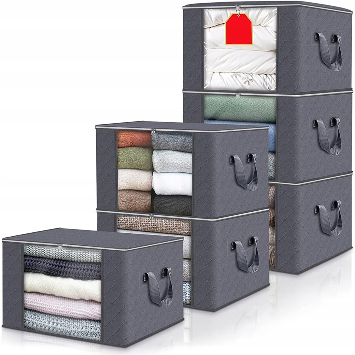【Большая вместимость, складная】Большой объем примерно 60 x 40 x 35 см (Д x Ш x В) (84 л). Эти сумки для хранения идеально подходят для хранения одеял, одеял, одежды, покрывал, подушек, свитеров и других вещей в вашем шкафу, защищая их от пыли и грязи, чтобы вам не приходилось тратить дополнительное время на стирку одежды. Складная конструкция позволяет легко хранить их, когда они не используются, и экономит много места. Удобно и практично!