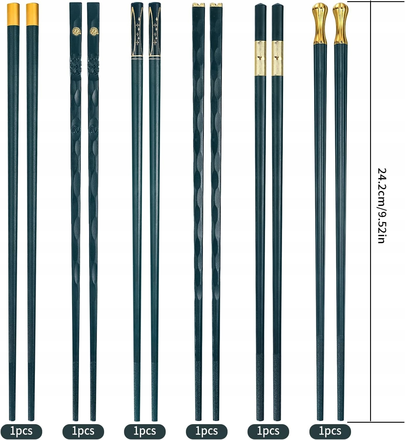 В комплект входит: Вы получите 6 пар китайских палочек для еды длиной 24,3 см, темно-зеленого цвета; достаточное количество и разные стили, вы можете легко отличить палочки для еды от палочек для еды вашей семьи.