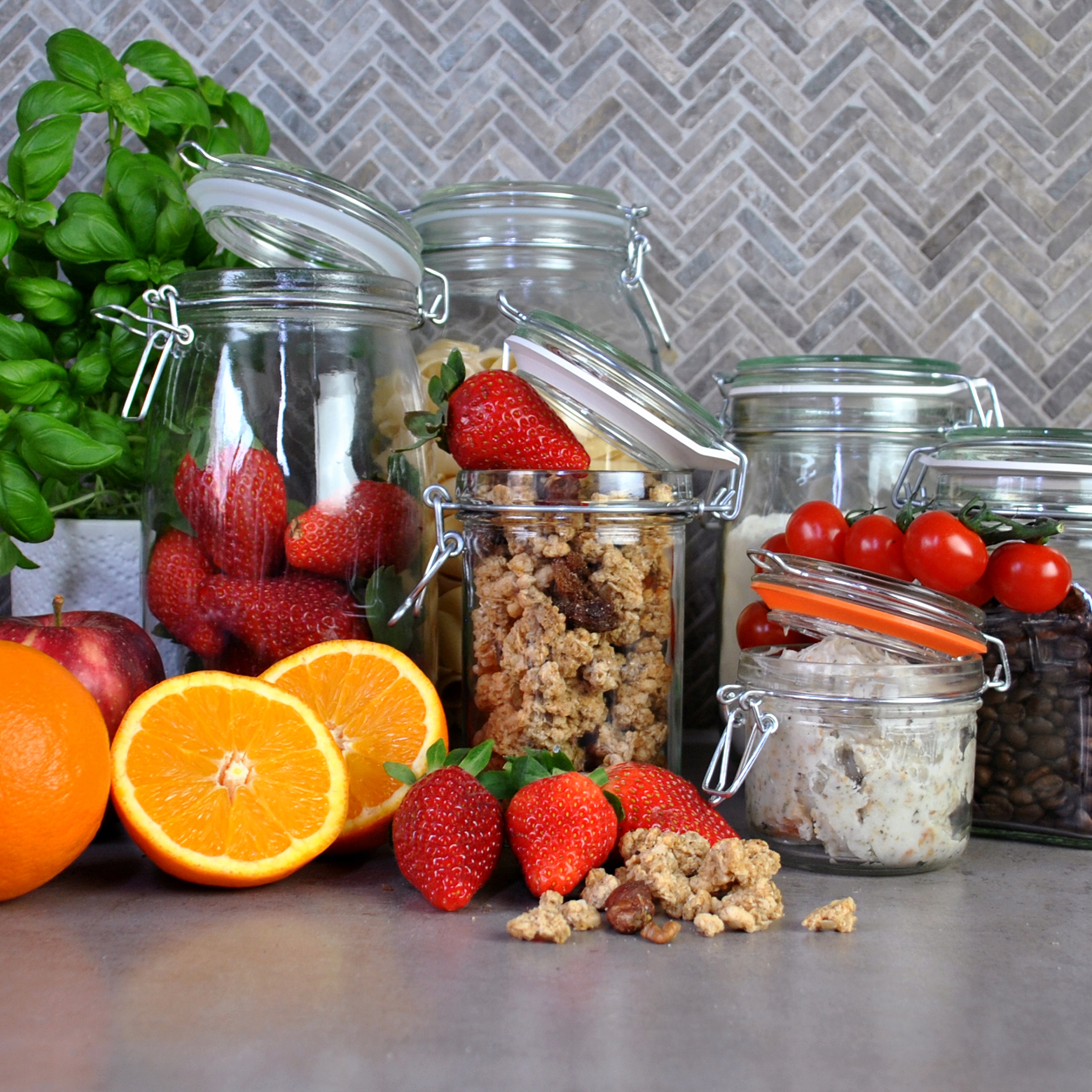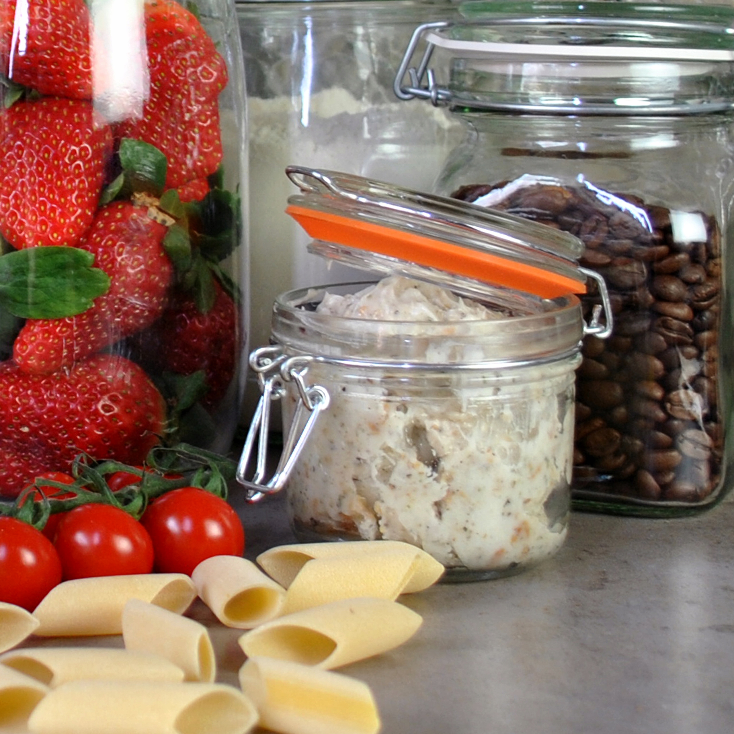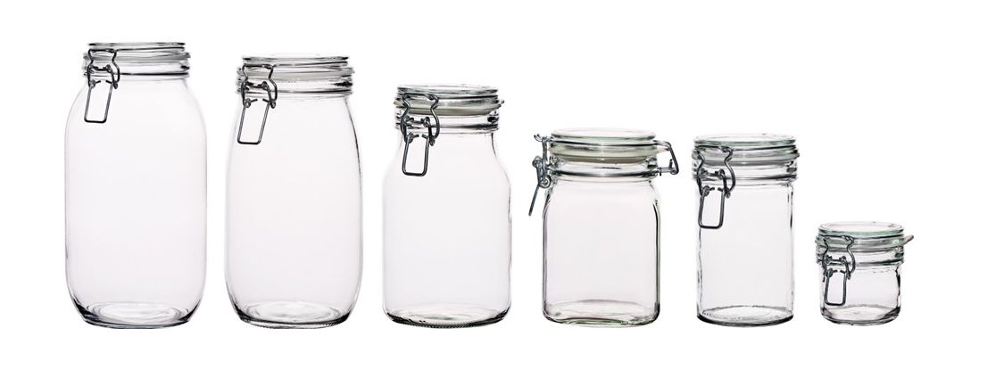 Изготовлен из высококачественного прозрачного стекла. Стеклянная крышка имеет застежку-бантик, обычно известную как пряжка. Кроме того, банка имеет уплотнение, благодаря которому хранящиеся продукты дольше остаются свежими.